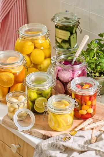 Et klassisk opbevaringsglas med patentlåg, der holder indholdet friskt og sikkert. Perfekt til alt fra tørvarer og krydderier til hjemmelavede godter. Det tidløse design forener funktionalitet og stil i køkkenet.