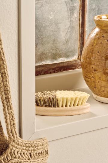 Børste i bøgetræ med naturfibre i to hårdhedsgrader. En hjælpsom lille skrubbeven til hele hjemmet. Ligger godt i hånden og er nem at bruge.
