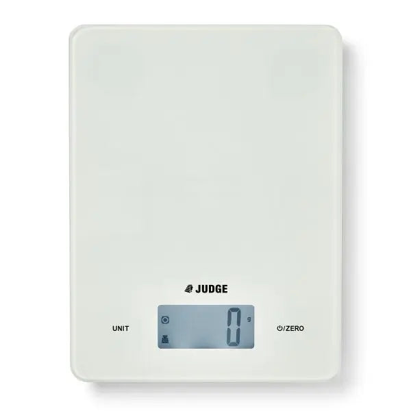 Den slanke Judge Digital Touch Control Scales vil finde et hjem på enhver bordplade. Digitalvægtens kompakte størrelse og overlegne nøjagtighed gør dem til en hurtig favorit. Spar på opvasken ved at bruge tilføj vægt-funktionen, eller konverter hurtigt mål mellem pund og gram ved et tryk på en knap.