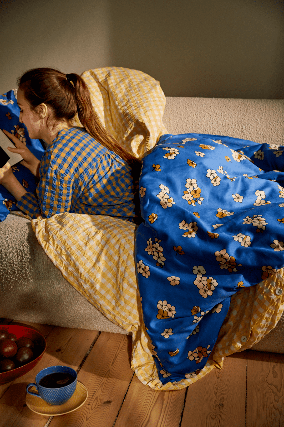 Pudebetrækket i Bæk&Bølge-serien lukkes med kuvertlukning, mens dynebetrækket lukkes med knaplukning. Og har du flere forskellige Bæk&Bølge-sengesæt fra JUNA, kan du lege med at blande de forskellige farver og mønstre på kryds og tværs og skabe din helt egen stil i soveværelset. Bæk&Bølge-sengesættet kan vaskes ved 60 grader, men JUNA anbefaler, at du vasker det ved 40 grader i vaskemaskinen, så du bevarer blødheden og kvaliteten mange år frem.