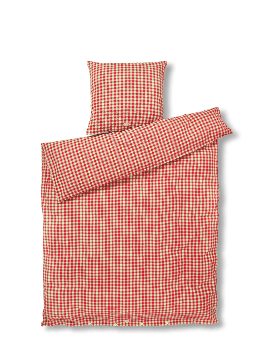 Sanseligt, behageligt, 100% økologisk og GOTS-certificeret. Sengetøjet Bæk&Bølge fra JUNA er produceret ud fra ansvarlige principper og har en helt speciel vævning med en tekstur, der vækker minder. Måske kan du huske følelsen af stoffet fra barndommen, bedsteforældrene eller sommerhusferierne? Ikke alene er der noget nostalgisk over materialet – det er også funktionelt og lader luften cirkulere mellem din hud og stoffet. Det kalder på en god nats søvn, så du kan restituere og lade op til en ny dag. Bæk&Bølge har det helt rigtige casual og naturlige udtryk, der præger tidens mode og indretningstrends. Uperfekt på den helt perfekte måde. Sengetøjet til dyner med ekstra længde måler 140x220 cm og kommer i farvekombinationen rød/gul, der fortæller historien om lækre farver fra sommerens solnedgange ved havet eller en panna cotta-dessert med nyplukkede hindbær. Med den friske og revitaliserende røde farve sat sammen med en lys gul får du tilført masser af sommerstemning, der giver energi og livsglæde til soveværelset. Sæsonfarver, men alligevel så gennemført klassiske, at det nye JUNA-sengetøj sagtens kan bruges året rundt. Og år efter år. Har du flere forskellige Bæk&Bølge-sengesæt fra JUNA, kan du lege med at blande de forskellige farver og mønstre på kryds og tværs og skabe dit eget drømmende univers i soveværelset, i sofaen, i hængekøjen, på altanen, eller hvor du nu tager din dyne og pude med hen. Du kan gøre lige, hvad du drømmer om. (GOTS ”Organic” Certified by Control Union, CU1026087)