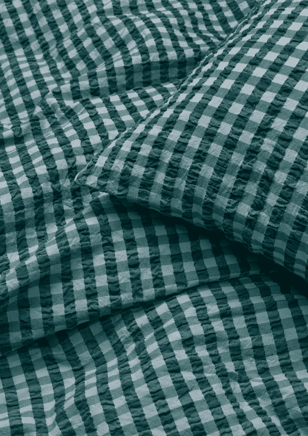 Sanseligt, behageligt, 100% økologisk og GOTS-certificeret. Sengetøjet Bæk&Bølge fra JUNA er produceret ud fra bæredygtige principper og har en helt speciel vævning med en tekstur, der vækker minder. Måske kan du huske følelsen af stoffet fra barndommen, bedsteforældrene eller sommerhusferierne? Ikke alene er der noget nostalgisk over materialet – det er også funktionelt og lader luften cirkulere mellem din hud og stoffet. Det kalder på en god nats søvn, så du kan restituere og lade op til en ny dag. Sengetøjet til almindelige dyner måler 140x200 cm og kommer i den drømmende farvekombination grøn/lys blå, der er inspireret af det nordiske vinterlandskabs helt særlige nuancer som nåletræernes stedsegrønne farvepalet og de bundfrosne søers isblå toner. Har du flere forskellige Bæk&Bølge-sengesæt fra JUNA, kan du lege med at blande de forskellige farver og mønstre på kryds og tværs og skabe dit eget drømmende univers i soveværelset, i sofaen, i hængekøjen, på altanen, eller hvor du nu tager din dyne og pude med hen. Du kan gøre lige, hvad du drømmer om. (GOTS ”Organic” Certified by Control Union, CU1026087)