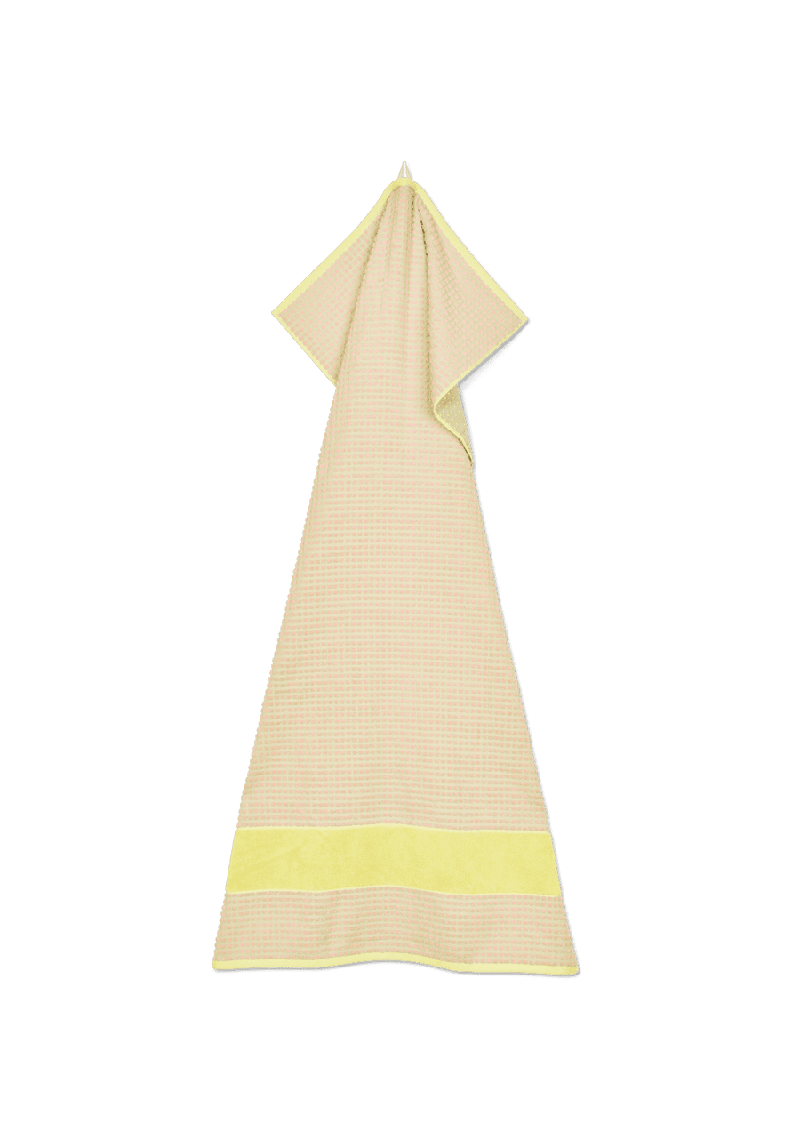 Giv dig selv lidt certificeret hverdagsluksus på badeværelset med de bløde Check-håndklæder fra JUNA i 100% økologisk bomuld, der både er OEKO-TEX®-mærket og GOTS-certificeret. Det betyder, at du er sikret en ansvarlig produktion og tekstiler af en høj kvalitet skabt med omtanke og omsorg over for både miljø og mennesker. Check-håndklæderne er elegante og fulde af liv skabt i den velkendte JUNA-kvalitet med små strukturvævede tern i en flot og funktionel vævning, der føles blød og dejlig mod huden, når du kommer ud af badet eller tørrer hænderne – og pynter selvfølgelig også, når de ligger foldet sammen på hylden eller hænger på knagen. Dette Check-håndklæde måler 70x140 cm og kommer i farvekombinationen gul/lyserød – en varm og inviterende humørbooster der fuld af intensitet og optimisme i sit næsten glødende farvespil vil føles genopbyggende og tilføre en passioneret og levende sanselighed i indretningen. At skifte håndklæder er en nem måde at forny badeværelset på, da tekstilerne kan ændre rummets udtryk markant, så brug Check-håndklæderne til at skabe præcis den stil på badeværelset, du drømmer om. Vælg både dine håndklæder i almindelig størrelse på 50x100 cm og dine badehåndklæder på 70x140 cm i den samme farve for et strømlinet og ensartet udtryk eller fold hele farvepaletten ud og mix og match Check på kryds og tværs, som du har lyst. (GOTS ”Organic” Certified by Control Union, CU1026087)