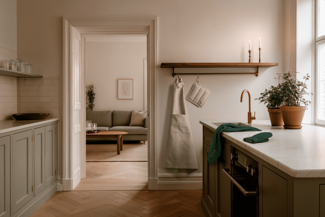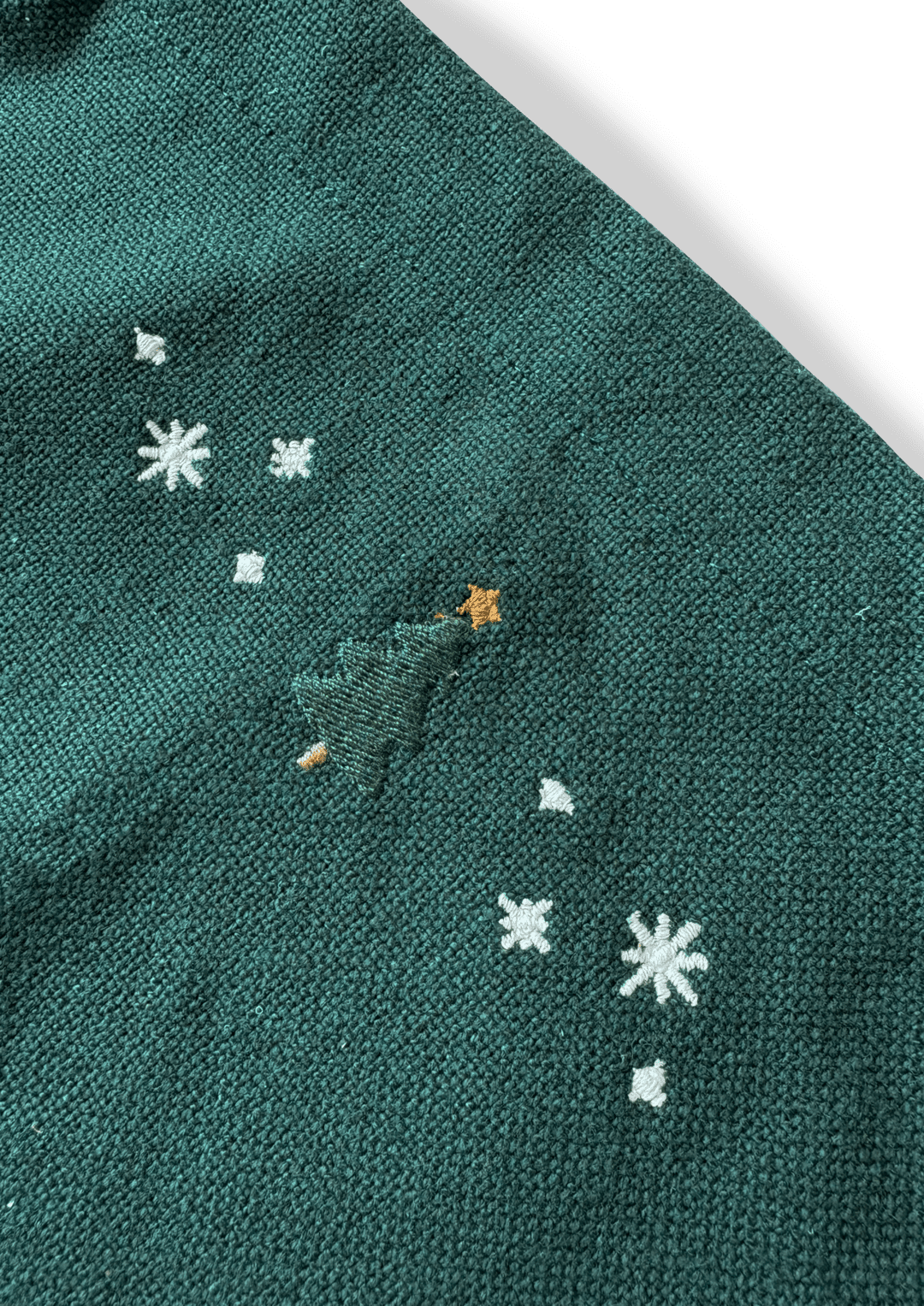 Mærk stemningen med JUNA Christmas Fable – magiske juletekstiler til alle rum. Juleeventyr, fantasi og humoristiske dekorationer med masser af cosy kant. Med JUNA Christmas Fable får du en serie af moderne tekstiler med broderede motiver, der både æstetisk og legende forankrer og fornyer julens helt særlige stemning gennem et magisk juleunivers fuld af traditioner, hygge og personlighed. Tænk på en komplet og fuldstændig gennemført julekollektion af certificerede tekstiler til både dit køkken og resten af hjemmet. De dekorative julesokker på trappen fyldt op med dagens kalendergaver. Duftene fra køkkenet, der blander sig med hjertevarme forventninger og kærlige minder om en hyggelig aften i stuen. Den ikoniske juleborddækning, der løfter stemningen og får både børn og voksne til at glædes sammen. Og forestil dig så det hele tilsat nærmest karikerede klassiske broderier, der fortæller endnu flere historier end de tråde, de er syet med. Tryllebunden misteltensmagi, skitseagtige juletræer, nuttede rensdyr, ikoniske julehjerter og fluffy julestjerner. Alle skabt med masser af glimt i øjet i en sød og bevidst naivistisk stil, der ikke kan undgå at sende dit julehumør helt op til den skønneste stjernehimmel. JUNA Christmas Fable er skabt til at samle os omkring bordet, i køkkenet – og også trække julestemningen med helt ind på puden, inden vi rammer drømmeland. Fuld af små broderede detaljer. Spækket med de helt store julefølelser. Dette fortryllende JUNA Christmas Fable-forklæde i en klassisk sandfarve er dekoreret med et broderet motiv af seriens mistelten, der omgivet af de yndigste små julestjerner i hvid smukt og stilfuldt pryder toppen af forklædet. Forklædet har selvfølgelig stropper for den helt rigtige justering både over nakken og omkring kroppen, og lige midt på fronten finder du en praktisk lomme – perfekt til at hænge et af Christmas Fable-seriens matchende viskestykker i. Forklædet er onesize og kommer i et skønt tekstilmix, hvor GRS-certificeret genanvendt bomuld bliver spundet sammen med polyester for en flot og funktionel stofkvalitet med både blødhed og slidstyrke. JUNA Christmas Fable-serien giver dig et bredt udvalg af certificerede juletekstiler til hele hjemmet, hvor du mærker julestemningen i hver eneste tråd, og som du kan glæde dig til at finde frem jul efter jul. En kærlighedserklæring til godt håndværk og dekorativt dansk design vævet sammen af store eventyr og små broderede detaljer – skabt til at holde længe og blive elsket endnu længere. (GRS Certified by Control Union, 1026087)