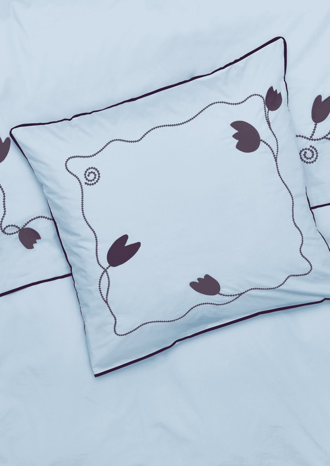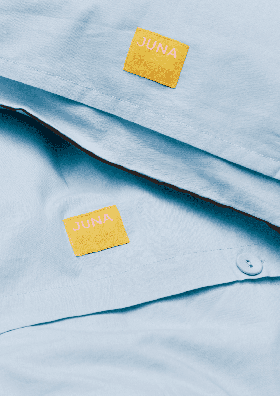 Mærk stemningen af bølgede blomsterranker i et opfriskende og trendy farveskema med masser af moderne kant. Med designsamarbejdet JUNA X KIMPOP fortolker de farverige personligheder Sofie Linde og Joakim Ingversen JUNAs drømmende univers i deres farverige, legende og unikke stil under navnet KIMPOP. Og med sengetøjet i Lollipop-kollektionen får du et fantastisk flow af broderede blomsterranker, der smukt og drømmende bølger sig ned over både pudebetræk og dynebetræk for en farvestrålende og fantasifuld stemning i soveværelset, i sofaen, i lænestolen, på din daybed, eller hvor du ellers hygger dig med din dyne og pude. Præcis ligesom JUNA ønsker Sofie Linde og Joakim Ingversen at skabe en hyggelig og uhøjtidelig følelse med deres tekstildesign, der inspirerer til store drømme i farverige omgivelser. Dette sengesæt til dyner med ekstra længde måler 140x220 cm og kommer i en sart lyseblå prydet med broderede blomsterranker i bordeaux – en både sofistikeret og sensuel farvekombination, der forstærkes af den fremtrædende piping hele vejen rundt langs kanten i samme trendy bordeaux farve. Og du bliver selvfølgelig heller ikke snydt for Lollipops signaturregnbue, som du finder broderet i sin mangfoldige skønhed øverst til venstre på dynebetrækket. Lollipop-sengetøjet er fremstillet i 100% økologisk bomuld, der er GOTS-certificeret, så du lunt og trygt kan nyde en god nats søvn, og når du kommer helt tæt på, vil du ud over detaljerne med blomsterrankerne også virkelig kunne se og mærke lækkerheden i den tætte og fine bomuldspercale, der giver stoffet en blød og glat tekstur. Samtidig med at være ekstremt behagelig at sove i får du med percalevævningen også et meget slidstærkt og holdbart sengesæt i en eksklusiv kvalitet, som du kan have glæde af nat efter nat – og år efter år. Pudebetrækket har kuvertlukning, mens dynebetrækket lukkes med knapper. Har du flere forskellige Lollipop-sengesæt fra JUNA, kan du lege med at blande de forskellige farver for at skabe lige præcis den følelse af cosy cocooning, der passer til dig og dit soveværelse. Med Lollipop og JUNA kan du gøre lige, hvad du drømmer om. (GOTS ”Organic” Certified by Control Union, 1026087)