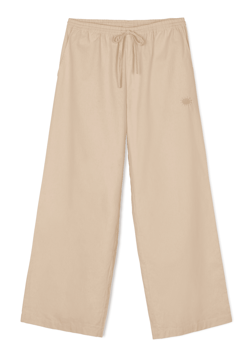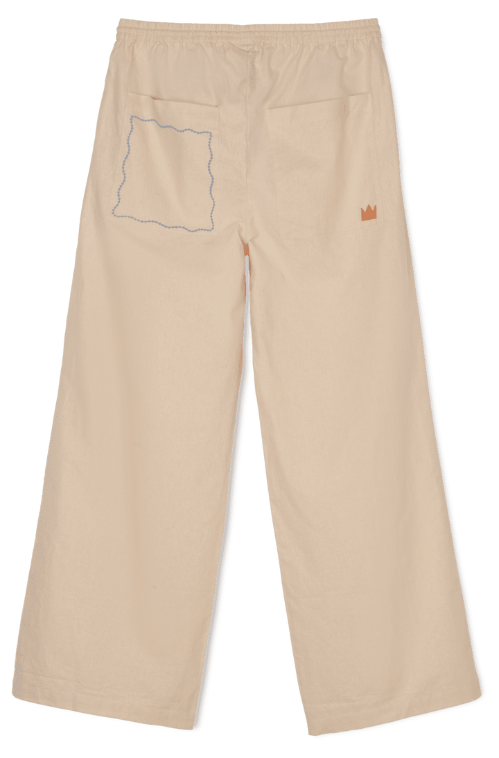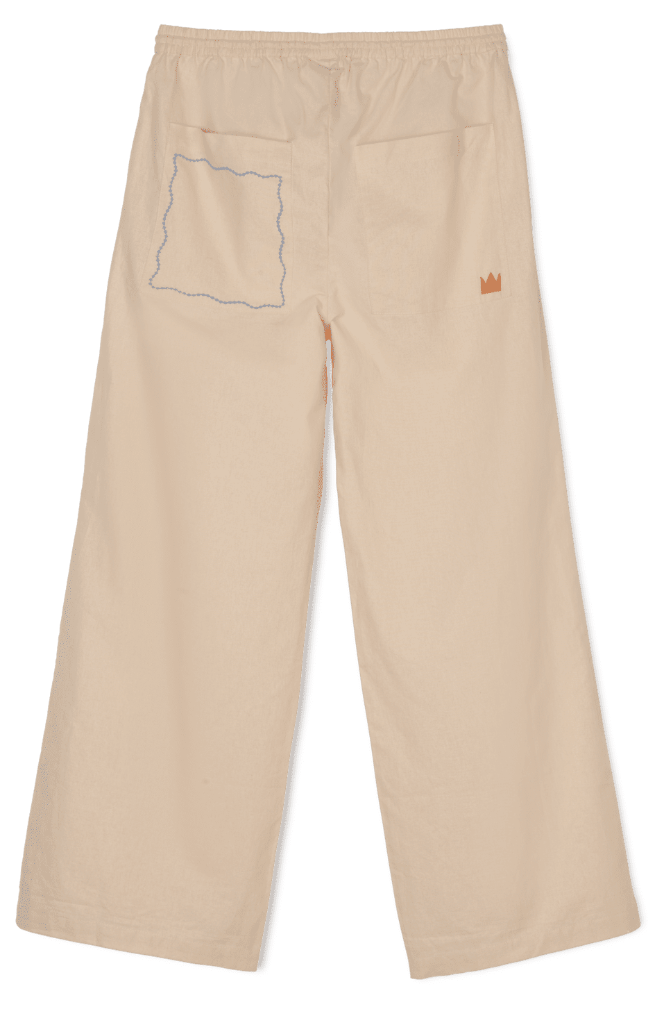 OBS. Nattøjet er stort i størrelsen. Hvem siger, at man kun kan have nattøj på om natten? De skønne pyjamasdele i Lollipop-kollektionen indbyder til, at du bliver i nattøjet hele dagen, og bukserne kan sagtens kombineres med en pæn bluse, ligesom overdelen ville se fantastisk ud til jeans eller en nederdel. Med klassiske skrædderdetaljer er håndværket i orden, og designet kan sagtens tåle dagens lys, men giver selvfølgelig også en dejlig nats søvn. De sandfarvede natbukser i str. S/M er fremstillet i 100% økologisk bomuld og som altid med JUNA, er tekstilerne desuden GOTS-certificeret, hvilket betyder, at du er sikret en ansvarlig produktion og tekstiler af en høj kvalitet skabt med omtanke og omsorg over for både miljø og mennesker. Bukserne er baggy med brede bukseben, der giver et cool og afslappet look, der eksekveres til perfektion med to sidelommer, baglomme og en casual snørelukning. Som en hyggelig detalje er natbuskerne broderet med en sød, lille regnbue. Et drømmende og muntert motiv, der symboliserer den fantasifulde og farverige verden, som KIMPOP inviterer os til at skabe og træde ind i – dag og nat. (GOTS ”Organic” Certified by Control Union, CU1026087