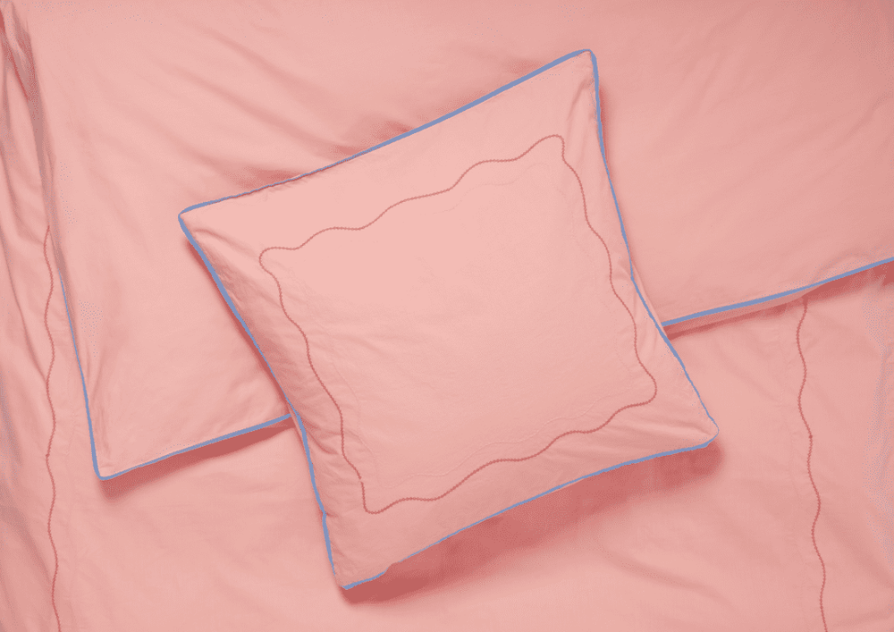 Med designsamarbejdet JUNA X KIMPOP fortolker de farverige personligheder Sofie Linde og Joakim Ingversen JUNAs drømmende univers i deres farverige, legende og unikke stil under navnet KIMPOP. Deres første kollektion Lollipop byder på bølgende kurver, overraskende linjer og moderne farvekombinationer, der skaber en farvestrålende og fantasifuld stemning i soveværelset, i sofaen, i lænestolen, på din daybed, eller hvor du ellers hygger dig i nattøj med din dyne og pude. Præcis ligesom JUNA ønsker Sofie Linde og Joakim Ingversen at skabe en hyggelig og uhøjtidelig følelse med deres tekstildesign, der inspirerer til store drømme i farverige omgivelser. Hele Lollipop-serien er desuden fremstillet i 100% økologisk bomuld, og tekstilerne er GOTS-certificeret, hvilket betyder, at du er sikret en ansvarlig produktion og tekstiler af en høj kvalitet skabt med omtanke og omsorg over for både miljø og mennesker. Sengesættet i farven soft pink måler 140x200 cm og har detaljer som en fremtrædende blå piping hele vejen rundt langs kanten, der står i smuk kontrast til stoffets underspillede pink farve og det broderede røde og lyserøde bølgemønster. De organiske mønstre har en følelse af noget naivistisk og håndtegnet over sig og rummer den umiddelbarhed og glæde ved former og farver, der kendetegner KIMPOP. Alt sammen i en skøn, umiddelbar stil. Og så gør det jo heller ikke noget, at sengetøjet også bærer OEKO-TEX®-mærket, der er din garanti for, at dit sengetøj ikke er skadeligt for din sundhed og samtidig også mindre belastende for miljøet. (GOTS ”Organic” Certified by Control Union, CU1026087)