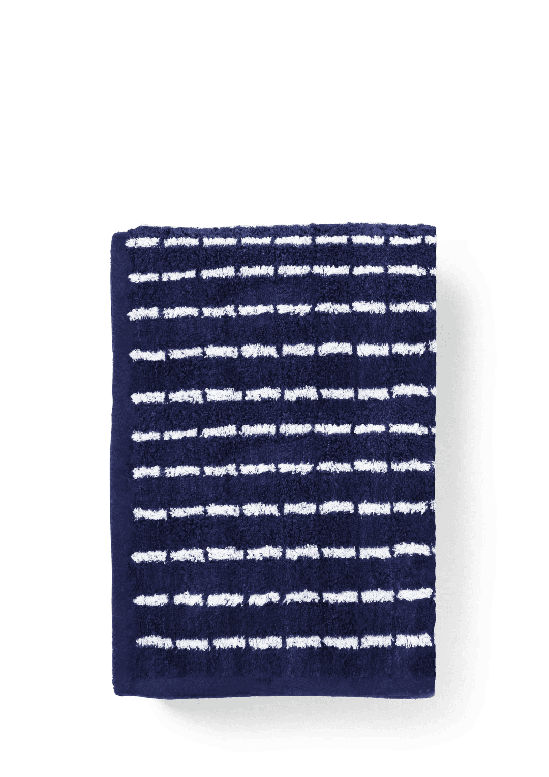 Mærk stemningen af vidunderlig hverdagsluksus på badeværelset. Med de skønne og bløde OEKO-TEX®-certificerede håndklæder fra JUNAs tekstilserie Nuance skabt i et moderne mix af bambus og bomuld kan du nemt og enkelt tilføje et legende tvist og nyde en ny sanselig og tryg dimension til tiden på badeværelset. Nuance-håndklæderne kommer i et subtilt og stilfuldt gradueringsmønster. Den flotte og funktionelle vævning er elegant og fuld af liv og selvfølgelig skabt i den velkendte JUNA-kvalitet, der føles blød og dejlig mod huden, når du kommer ud af badet eller tørrer hænderne. Og så pynter håndklæderne naturligvis også, når de ligger foldet sammen på hylden eller hænger på knagen. Dette Nuance-håndklæde måler 70x140 cm og kommer i farvekombinationen mørkeblå/hvid, der tilføjer noget velkendt og roligt og samtidig giver et stænk af noget maritimt – et afdæmpet og nærværende nautisk touch af coolness til indretningen der helt naturligt fører tankerne ud til på bølgerne på havet eller tager fortællingen ned langs kysternes vidtstrakte afslappethed. Vælg alle dine almindelige håndklæder og badehåndklæder i den samme farve for et strømlinet og ensartet udtryk eller mix og match med de andre håndklæder i serien og fold hele farvepaletten ud, som du har lyst. At skifte håndklæder er en nem måde at forny badeværelset på, da tekstilerne helt enkelt kan ændre rummets udtryk markant og være med til at definere præcis den stemning, du vil skabe. Uanset farve eller størrelse er alle Nuance-håndklæder OEKO-TEX®-mærket og produceret i det skønne mix af 60% bambus og 40% bomuld.