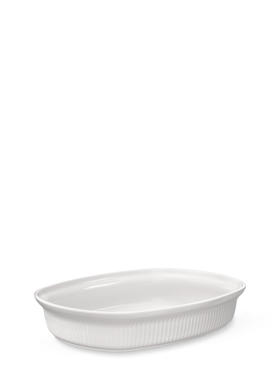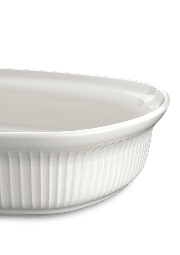 Elegant tilberedning og servering i en uundværlig klassiker. Fornyelse og autenticitet har altid været kodeord hos Kähler, og netop det nye og det autentiske forenes i en tidløs elegance i Kählers ovale ovnfaste Hammershøi-fade, der sammen med resten af Hammershøi-stellet både ærer og refererer til Kählers historie og samtidig rammer tiden og ser frem. Hammershøi-serien har i sig selv fået ikonstatus og er i dag en moderne klassiker, der appellerer til en bred vifte af designinteresserede mennesker. Og på de ovnfaste Hammershøi-fade i kridhvid keramik finder du selvfølgelig også de rene, minimalistiske linjer og behagelige, runde former, der er seriens signatur og giver en tidløs elegance i tråd med den danske designtradition og Hammershøis designvisioner. Dette mindste fad i serien måler 32x24 cm og klarer nemt en servering med ovnbagt laks plus tilbehør, mens seriens store fad på 39x29,5 cm er perfekt til for eksempel hele familiens yndlingslasagne. Fadene er ideelle til både tilberedning og serveringer til hverdag og fest, hvor Hammershøi-seriens ikoniske riller skaber seriens på én gang klassiske og moderne udtryk – et udtryk, der nu på tiende år har vundet stor popularitet i både ind- og udland. De smukke fade vil være de nye brandvarme stjerner på spisebordet, og når de skal pakkes væk, er det naturligvis tænkt ind i designet, at det lille fad nemt og bekvemt kan sættes oven i det store.