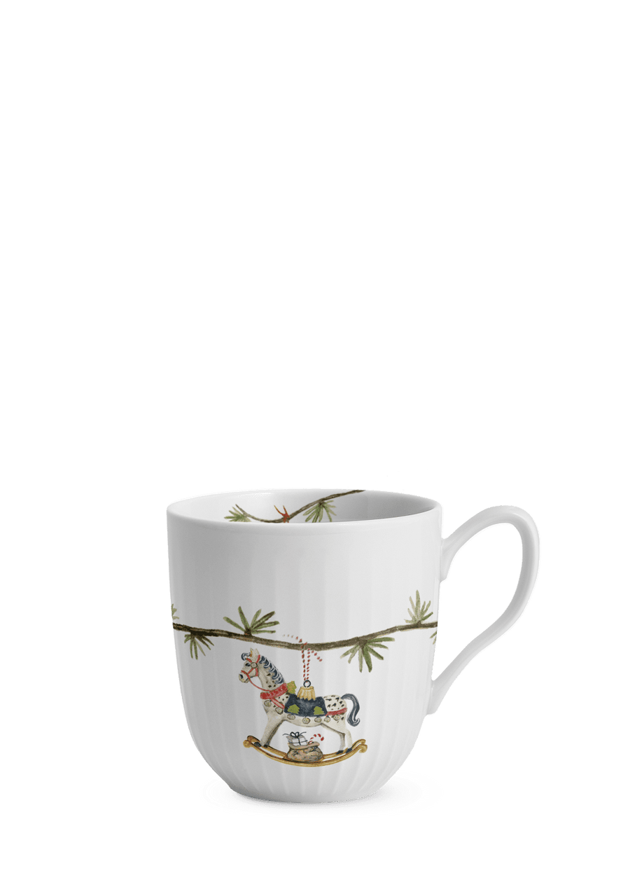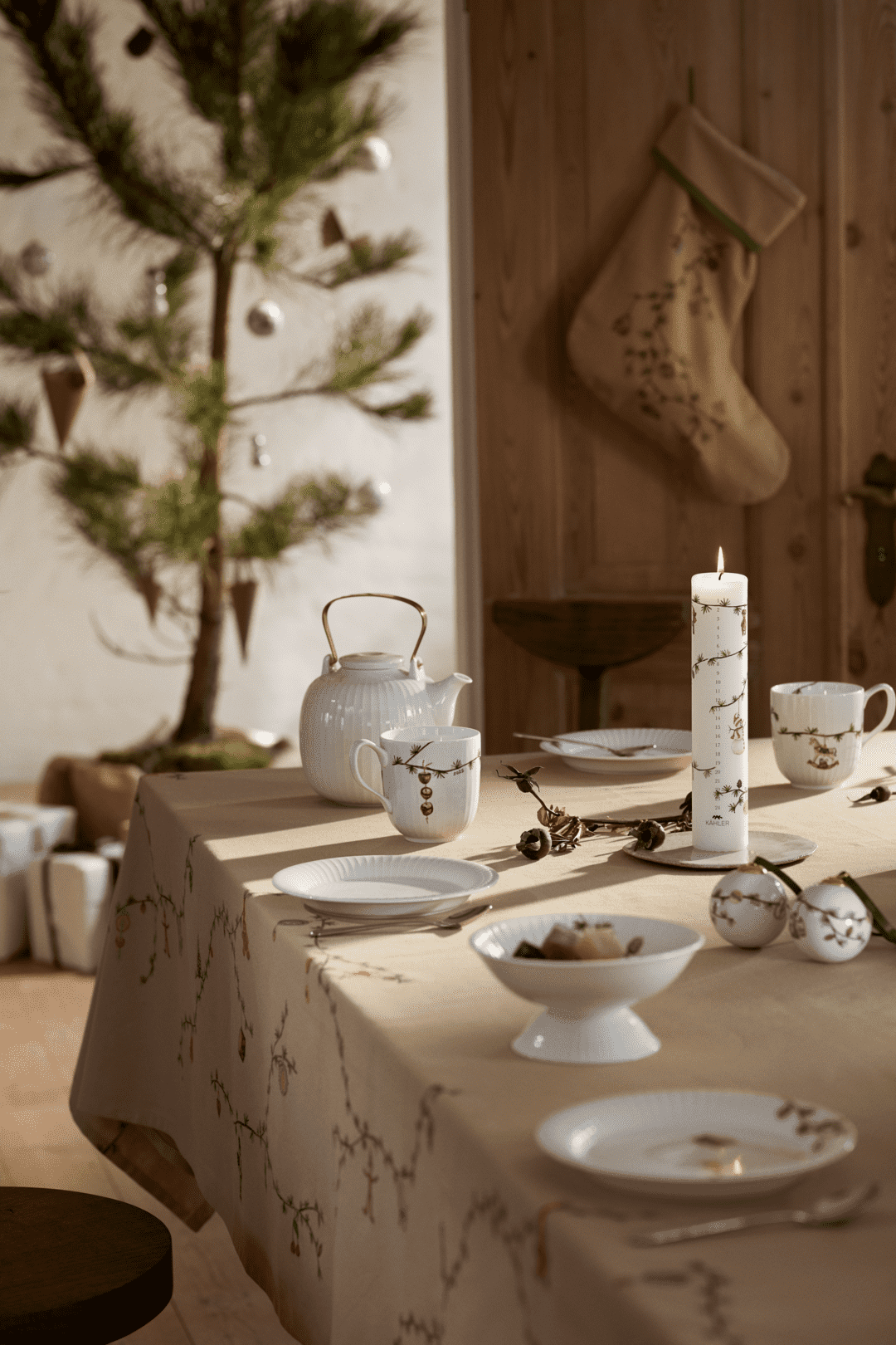 Kähler hylder julens særlige nostalgi og traditioner og inviterer med det både klassiske og moderne julestel Hammershøi Christmas os alle ind i julens magiske og fredfyldte univers formet af tradition. Julekruset 2025 fra Hammershøi Christmas er med sine 33 cl perfekt til julens varme drikke, lige fra den traditionsbundne gløgg i løbet af december til aftenkaffen, når roen sænker sig efter julemiddagen. Det er lavet i porcelæn og er dekoreret med en gennemgående cedergren med lærkekogler, der i år er pyntet med en gyngehest med en sæk fyldt med gaver, en lille juleslikstok, tre kastanjer i snor og en hjemmelavet småkage, der bringer autenticitet og ægthed ind i julen. Kigger du inden i kruset, har en nissedreng med et juletræ i miniatureudgave i hånden gemt sig som en lille overraskelse midt i din gløgg eller julekaffe. Det klassiske Hammershøi-stel designet af Hans-Christian Bauer er indbegrebet af Kählers solidt forankrede designfilosofi, hvor seriens diskrete riller giver alle dele en helt særlig autentisk elegance formet af tradition, mens de yndige julemotiver, der gennem årene er skabt af kunstner Rikke Jacobsen, hvert år tilfører stellet et nyt strejf af julemagi. I dag rummer Hammershøi Christmas dele nok til en komplet opdækning til alle decembers måltider, fra brunch og frokost til julemiddag.