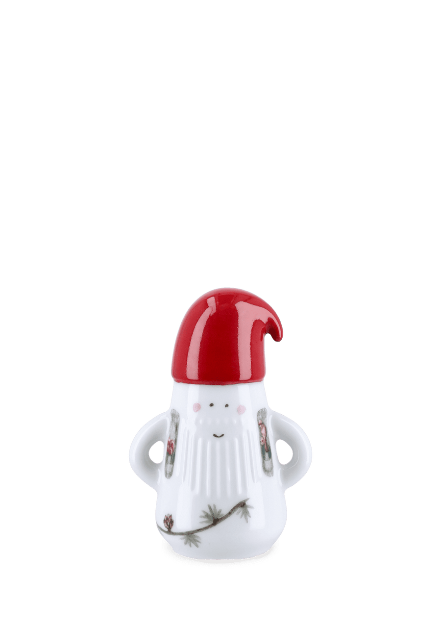 Juletraditioner og håndværkstraditioner i skøn forening. Med den lille nissefamilie med gaver fra Kählers juleserie Hammershøi Christmas bringer du julestemningen ind i boligen med glade smil og søde julemotiver i et skulpturelt og markant design, du kan mærke – autenticitet og kreativt håndværk formet af tradition. Hammershøi Christmas-nissefar er udformet i bløde linjer med Hammershøi-seriens ikoniske riller, der kendetegner Hans-Christian Bauers stel og bordpynt. Nissefar-figuren måler 9 cm i højden og er foruden den ikoniske cedergren med lærkekogler dekoreret med en fin vest med fine guldknapper og lommer proppet med småkager og en træske, så han altid er klar til at spise risengrød. Nissefar elsker musik, så han har naturligvis sin trompet hængende på ryggen, så han altid er klar til at give et nummer. Ingen nisse uden nissehue. Og derfor har nissefar selvfølgelig også den sødeste håndmalede nissehue i ægte nisserød, der for ægte Hammershøi Christmas-fans nok vil virke ret bekendt med sit karakteristiske buk ud til siden. Den er nemlig ligesom alle de andre motiver i serien skabt og malet i akvarel af kunstner Rikke Jakobsen i den velkendte hyggelige og håndmalede stil og herefter overført til det snehvide porcelæn med en særlig teknik. Hammershøi Christmas-nisserne er sammen med figuren med gavestakken autentisk dansk design, der kan gøre spisebordet mere levende, fortælle nye historier i vindueskarmen og fremhæve dit hjems skønhed fra en simpel hylde i reolen. For ligesom julen er også Kähler formet af tradition. Med Kählers juleserie Hammershøi Christmas kan du dække op til alle decembers sammenkomster fra brunch og frokost til julemiddag og æbleskivehygge, og det er oplagt at invitere de søde nisser med til bords, hvor de vil skabe stemning og hygge. Og har du lagt mærke til en helt særlig både finurlig og funktionel designdetalje? Nissefiguren står stolt med armene i siden, så der dannes et lille hul omkring albuerne – perfekt til at binde et flot bånd på og måske ovenikøbet vedhæfte dekorative bordkort til dine julegæster. Eller hvis du tør! Binde ham sammen med nissemor – eller seriens anden nissefar – så de kan stå som det sødeste lille nissepar. Enkelt, elegant og kreativt. Skabt af kreative og omhyggelige hænder. Fordi Kähler gør indtryk med sit tydelige aftryk.