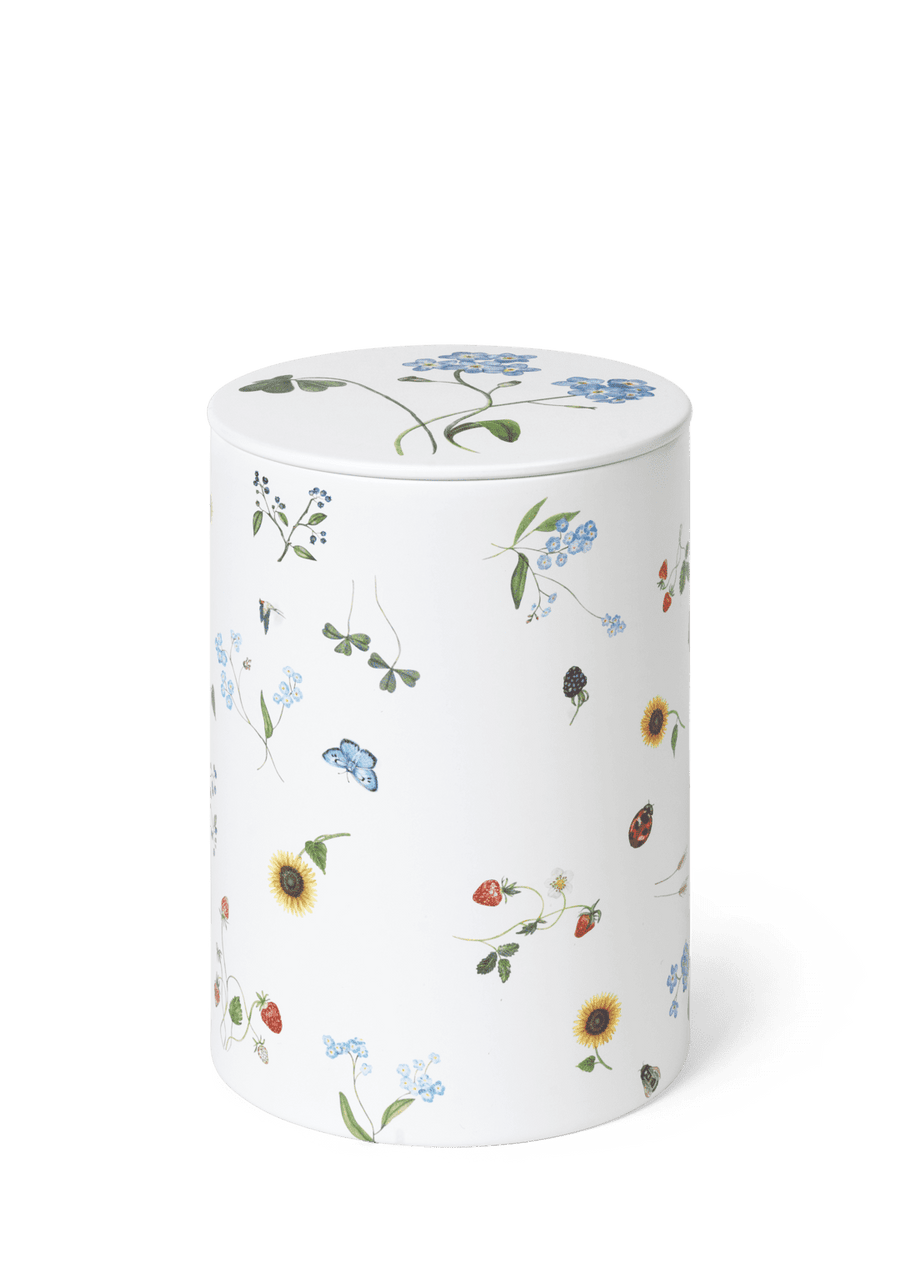 Blomstrende farver, former og følelsen af autentisk sommerstemning. Med Hammershøi Summer fra Kähler kan du næsten mærke solens stråler og den lune sommervind, når du dækker op til kaffe og lidt lækkert på terrassen, altanen eller i sommerhuset. Hammershøi Summer er inspireret af den danske sommers eventyrlige former, farver og følelser, og til 2025-sæsonen har en flot og stemningsfuld symfoni af de eksisterende motiver i Hammershøi Summer-serien fundet vej til et par stilfulde opbevaringsdåser. Denne Hammershøi Summer-opbevaringsdåse i flot dekoreret metal prydet med en symfoni af de forskellige Hammershøi Summer-motiver måler 14,5 cm i højden og er perfekt til småkager eller andre lækkerier til dig selv eller dine sommergæster – uanset om du lader dem stå på hylden i køkkenet, tager dem med ind på bordet eller blot ønsker at skabe masser af autentisk sommerhygge rundtomkring i boligen. Illustrationerne er placeret rundt på hele dåsen, så det giver et bedårende billede af de mange fine blomster og forskellige sommerfugle. Symfonitemaet er malet på metallet på samme måde som de andre temaer i Hammershøi Summer-serien, hvor planter og blomster nærmest bevæger sig uvilkårligt hen over de klassiske riller på de hvide keramikdele. Det er som om de nærmest vokser op, ja, næsten danser hen over overfladen med deres forskellige asymmetriske retninger. Har du allerede andre dele i Hammershøi Summer-serien, vil opbevaringsdåserne med symfonitemaet været et smukt supplement til de øvrige temaer og fuldende en glad og hyggelig sommerstemning på bordet, samtidig med at du nyder den autentiske nostalgi i Kählers håndlavede designtraditioner. Motiverne er skabt af kunstner Rikke Jacobsen på Hammershøi-stellets eksisterende dele designet af Hans-Christian Bauer. Med sine smukke akvareller skaber hun detaljerige motiver, hvor flora og fauna spiller en gennemgående rolle og indfanger stemningen i naturen og årstiderne omkring os.