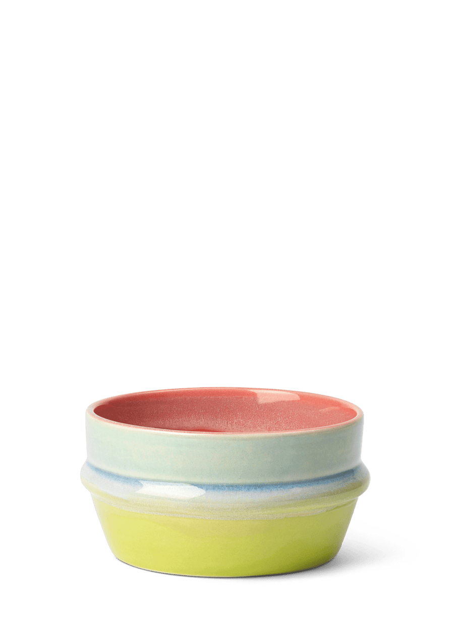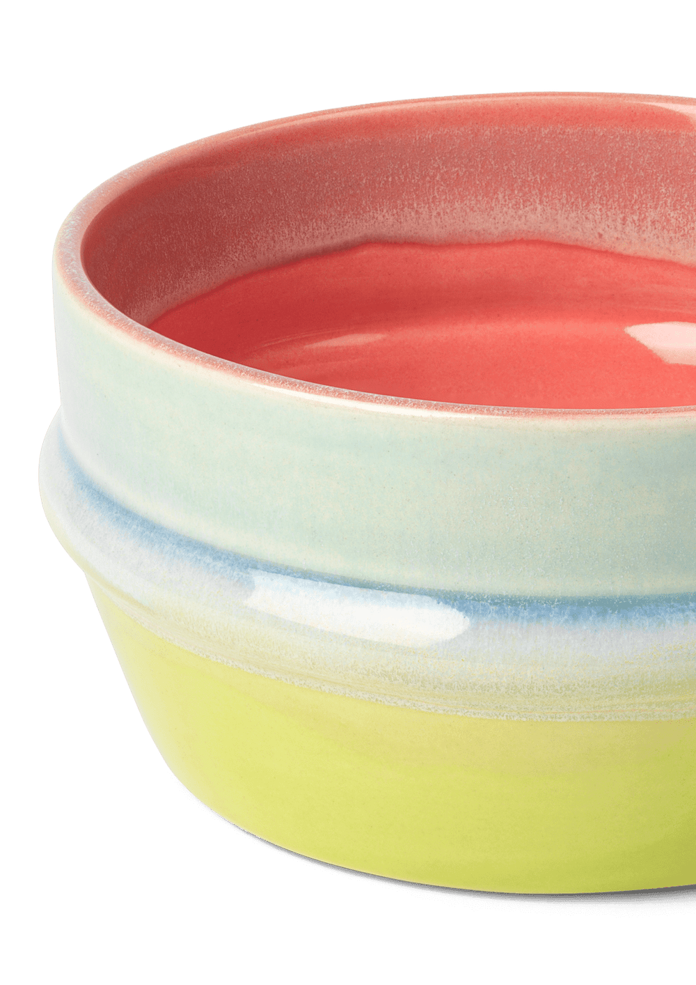 Farverig popkultur møder håndlavede designtraditioner. I deres fælles kærlighed til keramik har designduoen KIMPOP, der tæller de farverige personligheder Sofie Linde og Joakim Ingversen, arbejdet tæt sammen med Kähler om at designe en kunstnerisk kollektion, der både er rebelsk og autentisk – og som kommer direkte fra hjertet. Hele Kähler X KIMPOP Poppery-kollektionen funkler i et dristigt og selvsikkert mix af farverige pasteller, opulente glasurer, humoristiske detaljer og former, der skiller sig ud fra mængden og inviterer os til at tage flere farverige chancer i indretningen. Og Poppery-seriens mindste skål på 12 cm i diameter i pink, mint og æblegrøn omfavner til fulde både det keramiske håndværk og passionen for pop og populærkultur – perfekt til en hurtig og hyggelig morgenmad, på sofabordet fyldt med dit yndlingsslik eller som et kuriøst kunstværk på hylden. Uanset om du er på udkig efter en glad og frisk tilføjelse, der blender flot ind sammen med den eksisterende Poppery-kollektion, eller ønsker at kickstarte din Kähler X KIMPOP-samling med et unikt og levende design i sæsonens farver, så får du med denne flerfarvede skål inspireret af Kähler-designs fra arkiverne en skøn form og et smukt og autentisk visuelt udtryk, der indbyder til at sidde med skålen og sanse – både designet, det du spiser og verden omkring dig.
