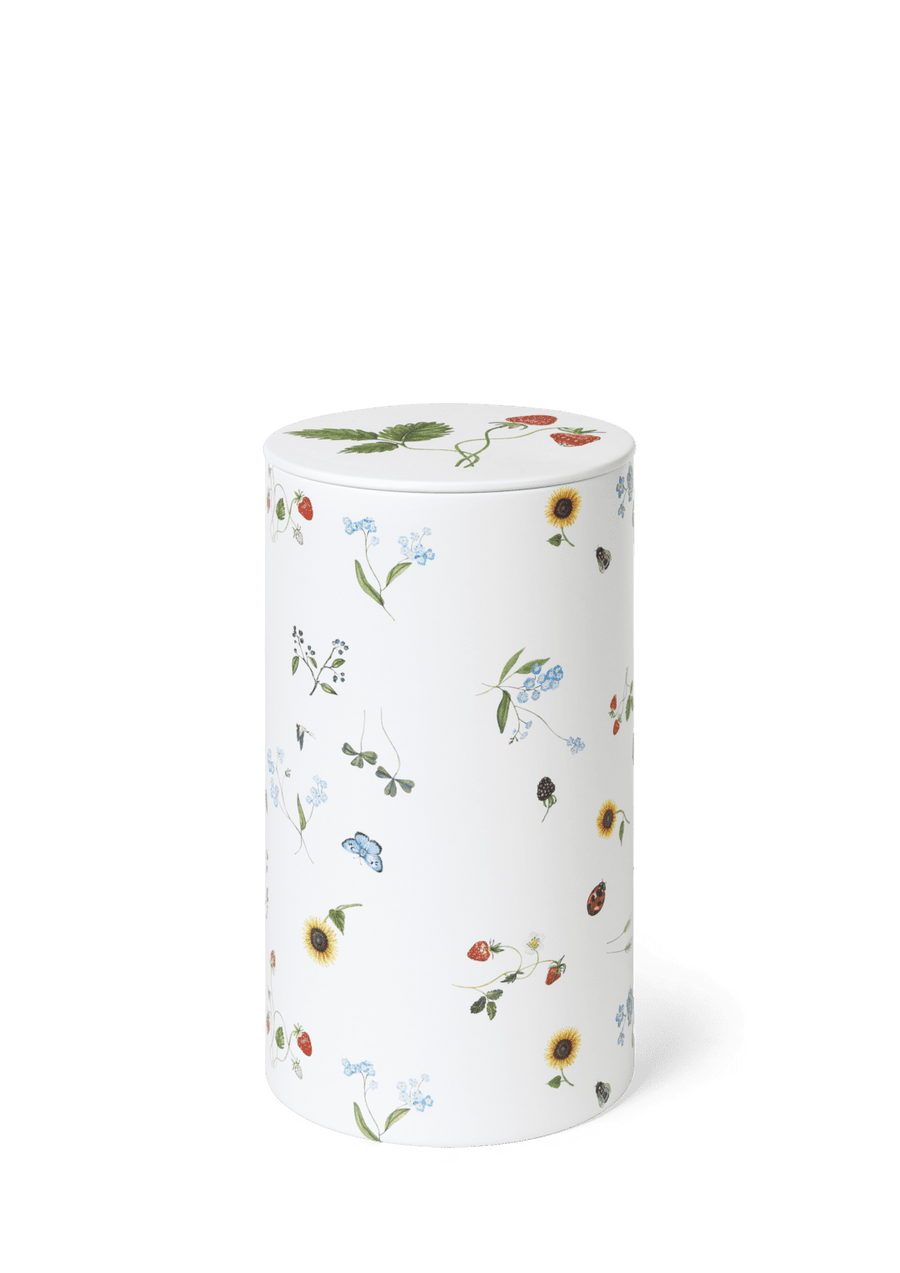 Blomstrende farver, former og følelsen af autentisk sommerstemning. Med Hammershøi Summer fra Kähler kan du næsten mærke solens stråler og den lune sommervind, når du dækker op til kaffe og lidt lækkert på terrassen, altanen eller i sommerhuset. Hammershøi Summer er inspireret af den danske sommers eventyrlige former, farver og følelser, og til 2025-sæsonen har en flot og stemningsfuld symfoni af de eksisterende motiver i Hammershøi Summer-serien fundet vej til et par stilfulde opbevaringsdåser. Denne Hammershøi Summer-opbevaringsdåse i flot dekoreret metal prydet med en symfoni af de forskellige Hammershøi Summer-motiver måler 14,5 cm i højden og er perfekt til småkager eller andre lækkerier til dig selv eller dine sommergæster – uanset om du lader dem stå på hylden i køkkenet, tager dem med ind på bordet eller blot ønsker at skabe masser af autentisk sommerhygge rundtomkring i boligen. Illustrationerne er placeret rundt på hele dåsen, så det giver et bedårende billede af de mange fine blomster og forskellige sommerfugle. Symfonitemaet er malet på metallet på samme måde som de andre temaer i Hammershøi Summer-serien, hvor planter og blomster nærmest bevæger sig uvilkårligt hen over de klassiske riller på de hvide keramikdele. Det er som om de nærmest vokser op, ja, næsten danser hen over overfladen med deres forskellige asymmetriske retninger. Har du allerede andre dele i Hammershøi Summer-serien, vil opbevaringsdåserne med symfonitemaet været et smukt supplement til de øvrige temaer og fuldende en glad og hyggelig sommerstemning på bordet, samtidig med at du nyder den autentiske nostalgi i Kählers håndlavede designtraditioner. Motiverne er skabt af kunstner Rikke Jacobsen på Hammershøi-stellets eksisterende dele designet af Hans-Christian Bauer. Med sine smukke akvareller skaber hun detaljerige motiver, hvor flora og fauna spiller en gennemgående rolle og indfanger stemningen i naturen og årstiderne omkring os.