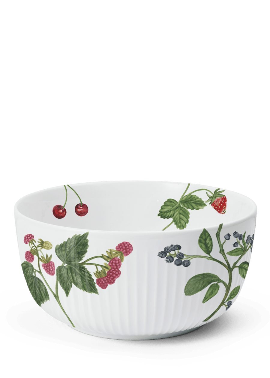 Blomstrende farver, former og følelsen af autentisk sommerstemning. Med Hammershøi Summer fra Kähler kan du næsten mærke solens stråler og den lune sommervind, når du dækker op til kaffe og lidt lækkert på terrassen, altanen eller i sommerhuset. Hammershøi Summer-serien er inspireret af den danske sommers eventyrlige former, farver og følelser, og Hammershøi Summer-skålen med sommerbær med en diameter på 21 cm er ligesom de andre dele i sommerbærtemaet flot udsmykket med blandt andet jordbær, blåbær og sommerfuglen dagpåfugleøje, der legende og poetisk flyver gennem sommeren. Sommerbærtemaet er malet på samme måde som de andre temaer i Hammershøi Summer-serien, hvor planter og blomster nærmest bevæger sig uvilkårligt hen over de klassiske riller på de hvide keramikdele. Det er som om de nærmest vokser op, ja, næsten danser hen over porcelænet med deres forskellige asymmetriske retninger. Skålen vil være et smukt supplement til de øvrige dele i serien – også på tværs af temaer – hvor den vil fuldende en glad og hyggelig sommerstemning på bordet, samtidig med at du nyder den autentiske nostalgi i Kählers håndlavede designtraditioner. Det er nemt at forestille sig Hammershøi Summer-skålen som den perfekte base for en sprød salat fra haven, og både størrelsen og selvfølgelig motivdesignet gør den helt oplagt til servering af et par bakker nyplukkede jordbær fra vejen eller det nærliggende gårdudsalg. Motiverne er skabt af kunstner Rikke Jacobsen på Hammershøi-stellets eksisterende dele designet af Hans-Christian Bauer. Med sine smukke akvareller skaber hun detaljerige motiver, hvor flora og fauna spiller en gennemgående rolle og indfanger stemningen i naturen og årstiderne omkring os.