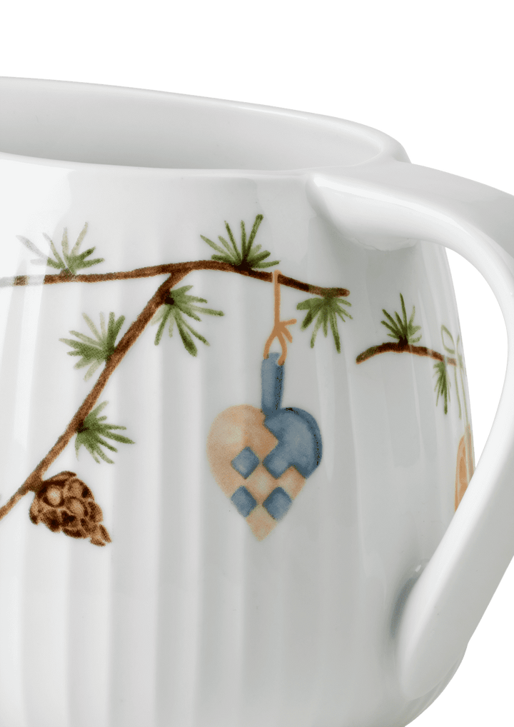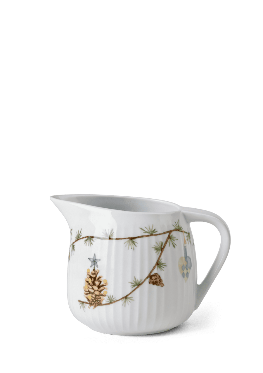 Hammershøi Christmas byder julen velkommen med flotte og stemningsfulde illustrationer til at pryde det populære julestel fra Kähler – perfekt til en både elegant og autentisk julemiddag. De fine, detaljerede julemotiver på de denne unikke saucekande er skabt af kunstneren Rikke Jacobsen, der med sin karakteristiske streg fortæller små historier med blandt andet kræmmerhuse, engle, valnødder, fugle, kogler og stjerner. Brug den smukke saucekande til alle julens fester – sammen med matchende tallerkener og fade fra Hammershøi Christmas eller i et miks med klassiske, hvide Hammershøi-tallerkener. Og glæd dig også over Rikke Jacobsens illustrationer på vaser, skåle, krus og julekugler i Hammershøi Christmas-serien.