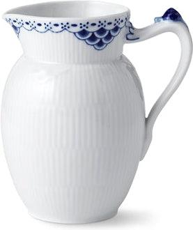 Denne porcelænskande er håndmalet i det romantiske Prinsesse-mønster, som tilføjer en raffineret elegance til kandens enkle formsprog. Under den feminine, håndmalede blonde sidder malede og ubemalede fiskeskælsdekorationer, mens der på kandens harpeformede hank balancerer en blåmalet snegl. Kanden rummer 55 cl.