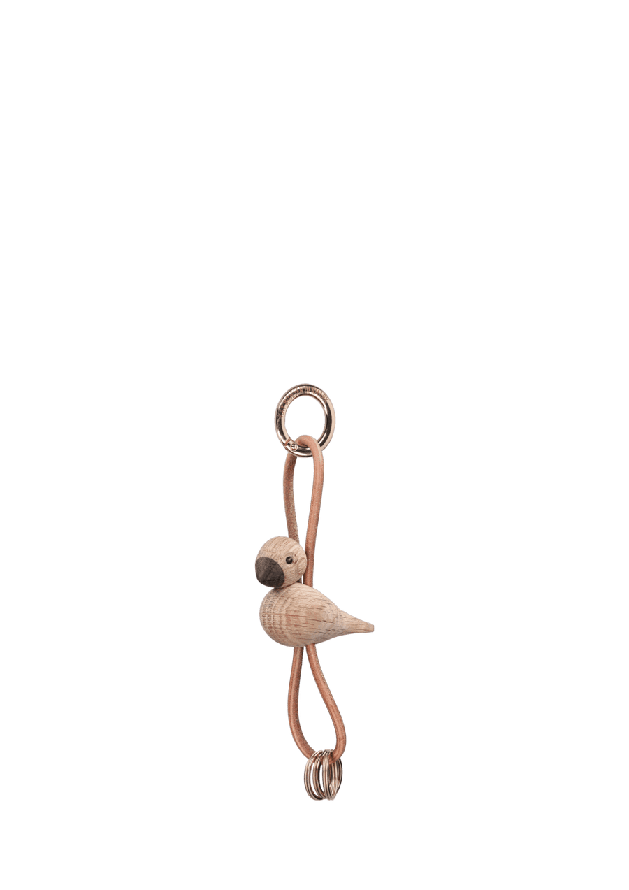 Tag Kay Bojesens elskede klassikere og din kærlighed til originalt dansk design med dig overalt. På tasken. I bæltet. Eller til bilnøglen. Denne Kay Bojesen-nøglering har sangfuglen i miniatureudgave skabt i FSC®-certificeret egetræ og kommer med en både æstetisk og smart naturfarvet snor i ægte læder, der kan flyttes op og ned i forhold til figuren, så du kan skabe dit helt eget udtryk. I toppen finder du en stor guldfarvet nøglering påtrykt Kay Bojesen Denmark, der ud over at være smukt dekoreret også er udstyret med en praktisk karabinhagefunktion, der let åbnes og lukkes, og i bunden under figuren hænger tre ekstra nøgleringe, så du har god til plads til alle dine nøgler. Med en smart og dekorativ nøglering fra Kay Bojesen Denmark kan du enkelt og stilfuldt gøre hverdagen mere personlig og tage originalt dansk design med på farten, uanset om du hægter denne variant med den klassiske sangfugl eller den legendariske abe fast som din altid trofaste buddy. Kay Bojesen var en mester i at tilføje små detaljer til sine trædesigns. Han fandt magien i naturens eget materiale, og med sit enestående formgivningstalent voksede den ene forunderlige figur efter den anden frem i hans fantasi og tog form mellem hans hænder. To af hans største klassikere er uden tvivl aben og sangfuglen. Og selvom sangfuglen i denne nøgleringsudgave er nedskaleret i volumen til en højde på bare 4,5 cm, så får du stadig masser af Kay Bojesens designarv med dig, uanset hvor turen går hen. Kay Bojesen skabte i 1922 sin første figur i træ og åbnede ti år senere butik og værksted i Bredgade i København. Lige siden har Kay Bojesen været synonym med original dansk formgivning og design og et fantasifuldt univers af ikoniske træfigurer, der med et skarpt øje for detaljen er skabt med udgangspunkt i humor og glæden ved unikt træhåndværk af højeste kvalitet. Det er derfor, vi siger, at Kay Bojesen er original siden 1922. Nøgleringen leveres i en genanvendelig non-woven pose og forsynet med et Kay Bojesen-tag.