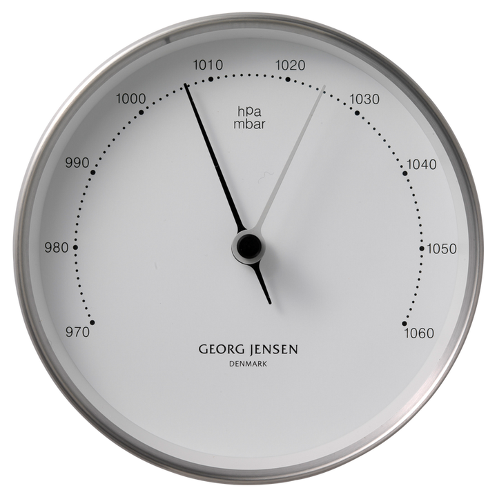 Du bliver aldrig overrasket af dårligt vejr igen med  klassiske Georg Jensen-barometer fra Henning Koppel. Designet er et ægte eksempel på skandinavisk minimalisme, og barometeret kombinerer funktionalitet med rene linjer og et virkelig gennemført look. Mekanikken sikrer nøjagtige målinger af atmosfærisk tryk og viser resultatet med uhørt præcision, så form og funktion går op i en højere enhed.