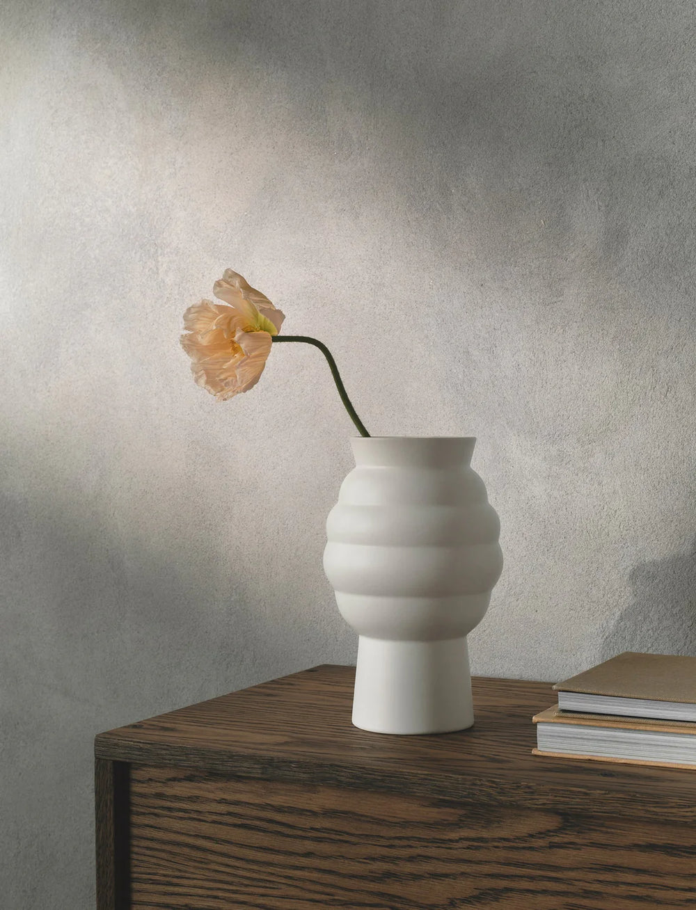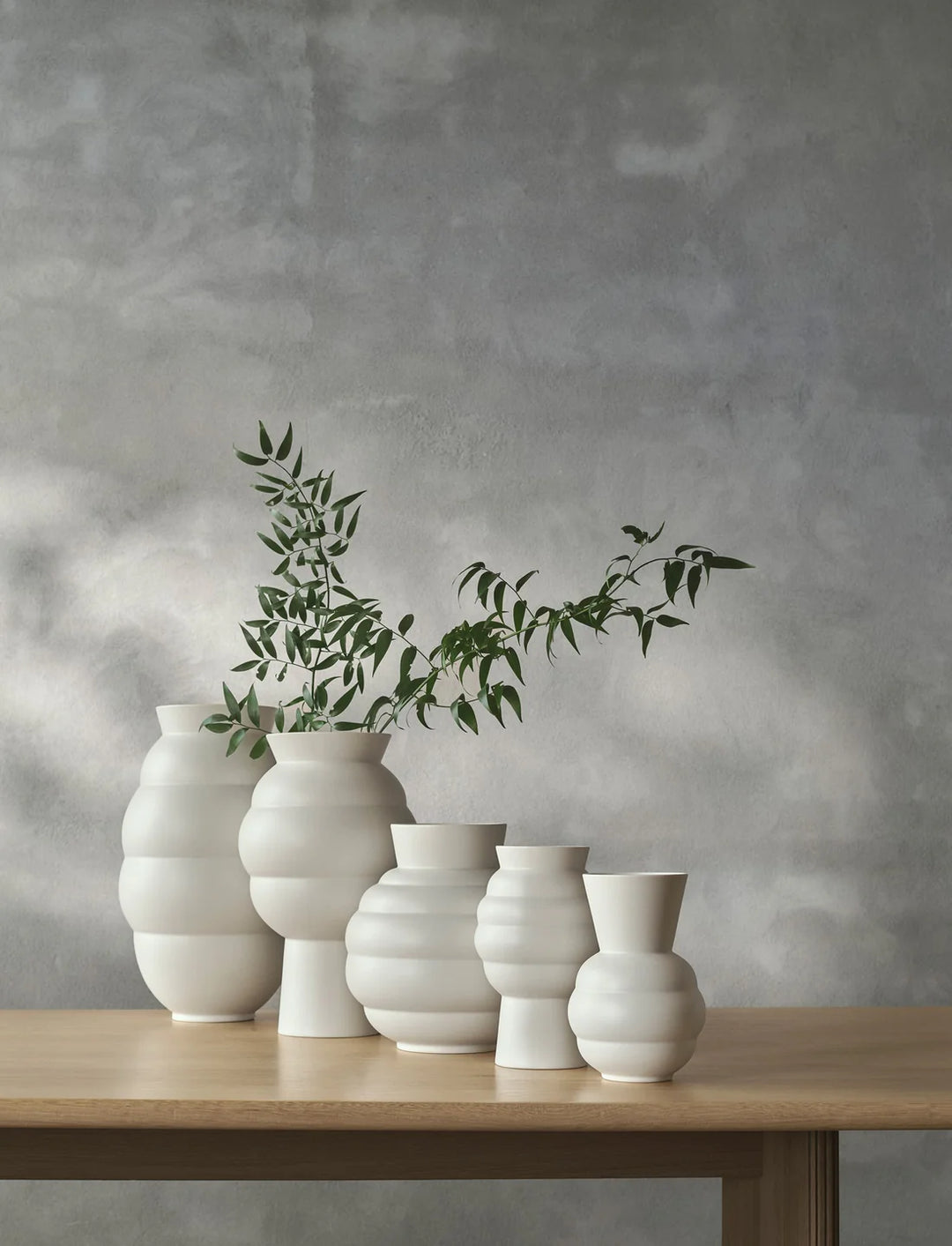 Archie is an exclusive vase collection from Knabstrup Keramik, created in collaboration with renowned ceramicist Eric Landon, also known as Tortus. The collection features 5 vases, all based on original pieces thrown by Eric in his studio in Østerbro, Copenhagen. With their flowing curves and sculptural form, the vases radiate elegance – whether displayed with or without flowers. The name Archie refers to the soft arches that give the series its organic and architectural character. Each vase has its own size and shape, yet they are all united by a shared design DNA that creates a harmonious whole. The series is crafted in glazed ceramic (faience) and produced in Portugal by a family-owned ceramics manufacturer, where craftsmanship and quality are key.