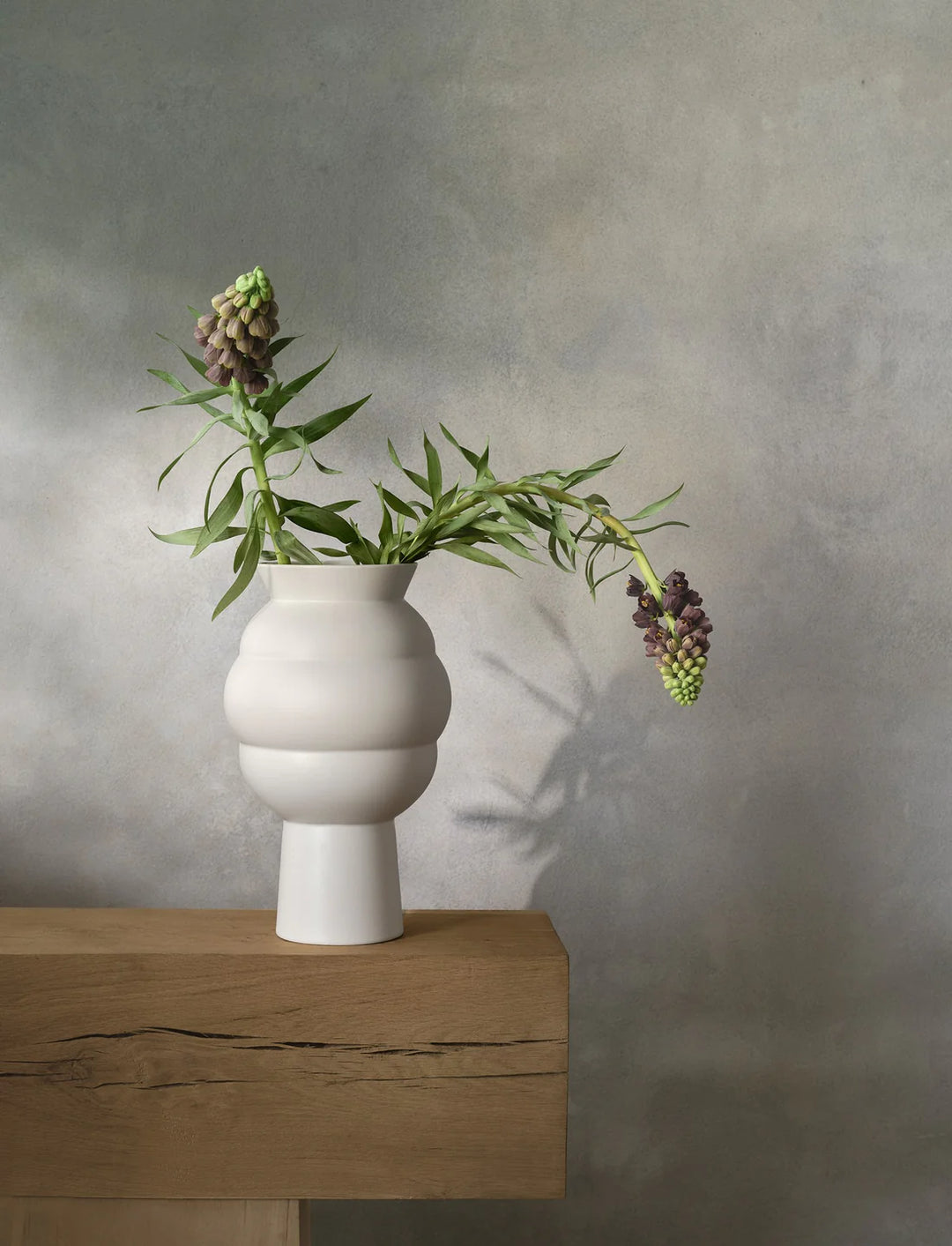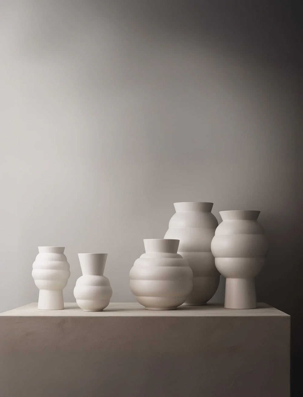 Archie is an exclusive vase collection from Knabstrup Keramik, created in collaboration with renowned ceramicist Eric Landon, also known as Tortus. The collection features 5 vases, all based on original pieces thrown by Eric in his studio in Østerbro, Copenhagen. With their flowing curves and sculptural form, the vases radiate elegance – whether displayed with or without flowers. The name Archie refers to the soft arches that give the series its organic and architectural character. Each vase has its own size and shape, yet they are all united by a shared design DNA that creates a harmonious whole. The series is crafted in glazed ceramic (faience) and produced in Portugal by a family-owned ceramics manufacturer, where craftsmanship and quality are key.