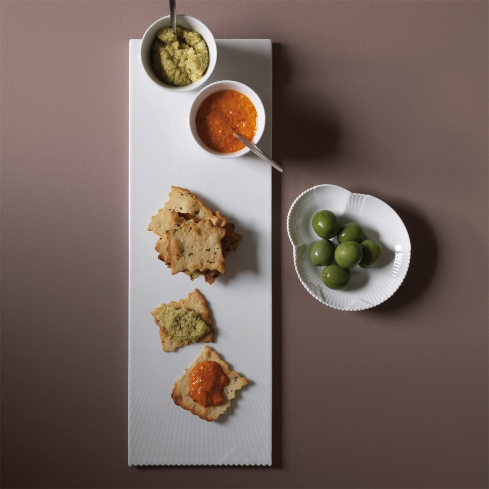 Den lille Hvid Elements Espressokop og underkop på 9 cl er ved første øjekast enkel i sit hvide udtryk, men den taktile steldel åbenbarer et sammensat relief af håndudskårne detaljer fra klassiske Royal Copenhagen stel. Espressokoppen kan med fordel kombineres med håndmalede stel for et personligt udtryk. I designet af Hvid Elements har Louise Campell skabt en charmerende og overraskende kombination af skattede designelementer fra Royal Copenhagens mest klassiske stel. I en ny fortolkning af traditioner er stellet udsmykket med riflerne fra Musselmalet Riflet, blondekanten fra Musselmalet Halvblonde og den takkede kant fra det ikoniske Flora Danica. Den overraskende brug af de klassiske elementer på det hvide porcelæn gør hver enkelt steldel helt unik.