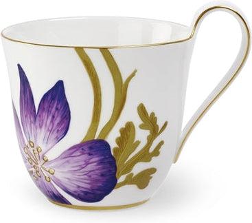 Overfladen på Flora højhankskoppen fungerer som et smukt kanvas for stedmoderblomster i nuancer af lilla, der vokser uhindret på den elegante kop med guldkanter. Koppen på 33 cl kan med fordel kombineres med andre dele fra Flora eller et af Royal Copenhagens andre smukke stel. Det har været kendt længe, at blomster taler deres helt eget sprog – uafhængig af tid og kultur. Smukke blomster kan kommunikere følelser på den mest udtryksfulde måde – lige fra det victorianske blomstersprog, floriografi, til det japanske blomstersprog, hanakotoba. På Flora får hver blomst lov at stråle i al sin glans i et stel, der bringer naturen indenfor i hver en steldel.