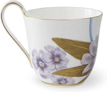 Rododendronens skinnende blade og ekstravagante blomster er gengivet i blød lilla på Flora højhankskoppen, hvilket gør koppen iøjnefaldende og elegant på én gang. Højhankskoppen på 33 cl kan med fordel sættes sammen med andre steldele fra Flora for at skabe et personligt blomsterflor. Det har været kendt længe, at blomster taler deres helt eget sprog – uafhængig af tid og kultur. Smukke blomster kan kommunikere følelser på den mest udtryksfulde måde – lige fra det victorianske blomstersprog, floriografi, til det japanske blomstersprog, hanakotoba. På Flora får hver blomst lov at stråle i al sin glans i et stel, der bringer naturen indenfor i hver en steldel.