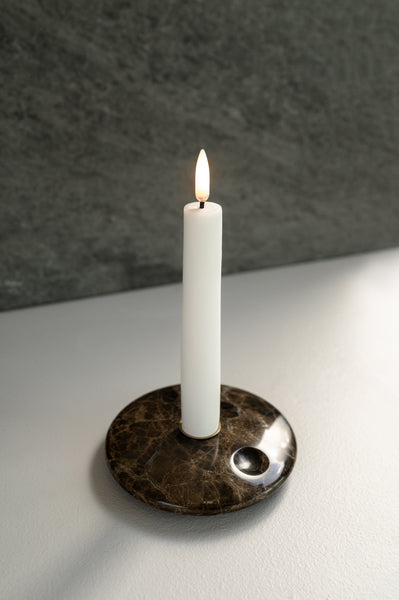Uyuni Candles are traditional in their aesthetic, luxurious to the touch, and innovative in their mechanics. Not only is the unique 3D flame a first-of-its-kind, but Uyuni Candles offer a practicality that sets them apart; turn them on and off from a distance or dim them to your desire with a useful remote control and timer options of 4, 6, 8, or 10 hours. A 6-hour manual timer switch allows you to conserve battery life while still benefitting from a lengthy ambient glow. Uyuni Candles are individually handcrafted with care from real wax.