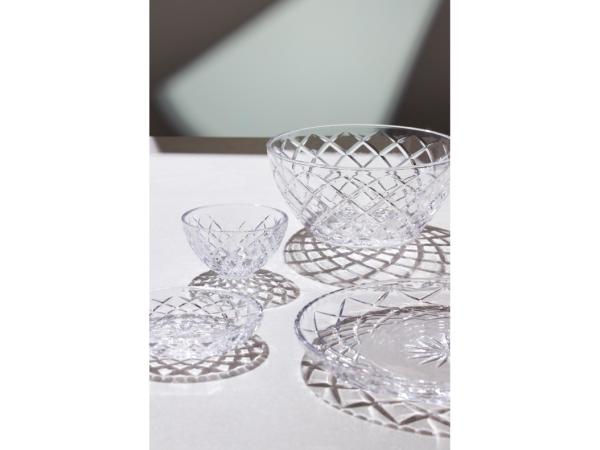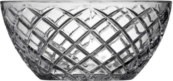 Smuk salatskål, dia. 24 cm, i presset glas. Det klassiske design med elegante facetter reflekterer lyset og løfter sanseoplevelsen, hvad enten du serverer en skøn salat, en lækker frugtbuffet eller andre anretninger.
