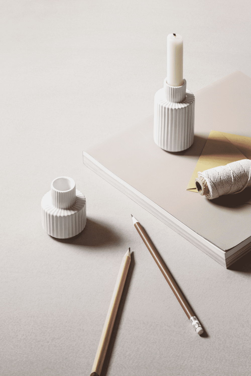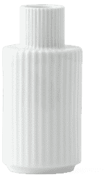 Kronelysestagen på 11 cm fra Lyngby Porcelæn er designet af Cecilie Toklum. Stagen er produceret i blankglaseret, hvidt porcelæn og er skabt med tydelig reference til den originale Lyngbyvase med rifler, der første gang blev produceret af Lyngby Porcelæn tilbage i 1930’erne. Kronelysestagen har brede rifler for neden og smallere rifler for oven, hvilket skaber et elegant og meget tidløst udtryk. Stagen fås ligeledes i en mindre version på 9 cm i højden, og de to kronelysestager fra Lyngby Porcelæn supplerer smukt hinanden, når de bruges sammen.