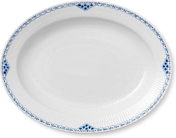 Dette smukke Prinsesse Fad på 36,5 cm er skabt til lækre serveringer til enhver anledning. Serveringsfadet er håndmalet med Prinsesse-stellets elegante blondekant, som inviterer dig nærmere for at studere hver en enkelt håndlavet detalje helt tæt på. Den feminine blonde og de blå fiskeskælsdekorationer på Prinsesse-stellet afslører et tæt bånd til de musselmalede stel, men alligevel er det feminine stel helt sit eget. Det delikate, klassiske udtryk i stellet kan ubesværet sættes sammen med andre af Royal Copenhagens stel og skabe personlige og nye udtryk.