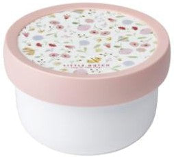 Mepals lille runde 300 ml Campus frugtboks med gaffel holder helt tæt og er nem for børnene at bruge. Boksen er ensfarvet med motiv på låget og fås med de samme motiver som de andre produkter i Mepals Campus-serie til børn. Frugtboksen kan vaskes i opvaskemaskine og kan (dog uden låg) anvendes i mikroovn. Fremstillet i Holland.