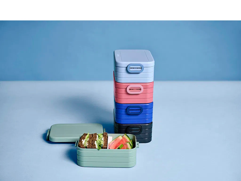 Robust Mepal Take-A-Break madkasse, medium. Kan bruges til sandwiches, salater, frugt og lignende. En speciel forsegling holder den medbragte mad frisk og smagfuld. TAB madkassen findes i forskellige smarte farver og størrelser, så den passer til enhver smag og appetit. Så tag en pause, når du er på farten, og nyd de medbragte lækkerier. Se også Take-A-Break køleelement - holder din frokost endnu mere indbydende og frisk. ABS-plast er et stødfast og robust materiale, som er velegnet til maskinopvask, men ikke egnet til mikroovn og fryser.