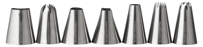 De to Sultan-tyller laver en fin stjernekruset ring med et glat hul i midten i to størrelser. Tyllen er rigtig god til marengs, smørcreme, piskede cremer, blød kransekagemasse, blød småkagedej m.m. Pynt f.eks. dine muffins eller tærter med lækker creme og fyld hullet med god marmelade. Det ser både smukt ud og smager superskønt.