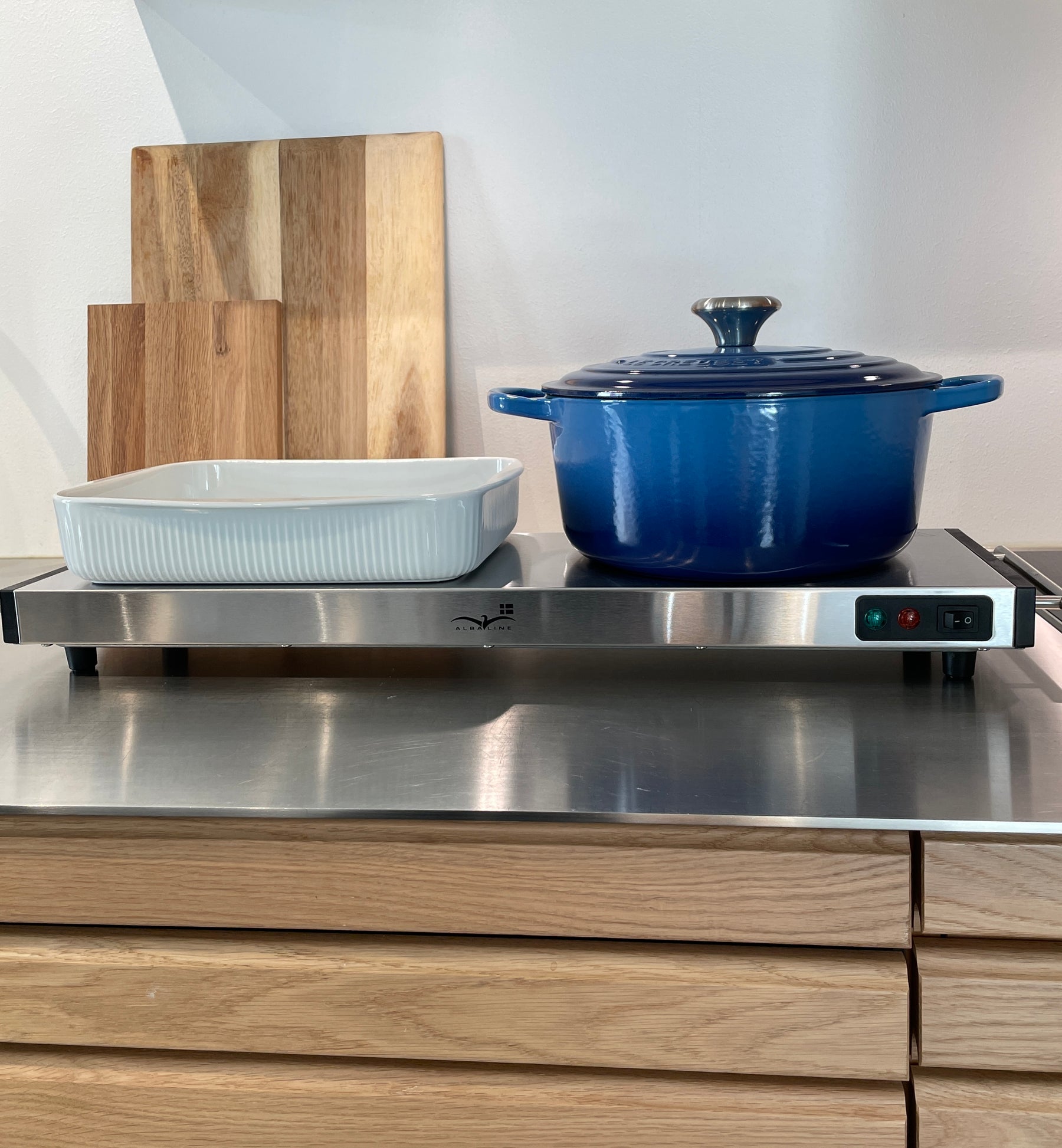 Alba varmeplade er perfekt når maden skal holdes varm til det store selskab. Varmepladen er nem at anvende. Du sætter bare stikket i kontakten, efter cirka 6 minutter er pladen varmet op til 80 grader, og kan derefter stilles direkte på bordet hvor du ønsker det. Alba varmepladen holder varmen i op til en time, og dermed kan du holde de mange lune retter i den helt rigtige temperatur gennem hele festen.