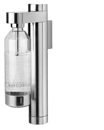 Den væghængte Brus sparer plads på køkkenbordet og leveres altid med en flaske, der fuldender designet. Gør din hverdag smuk og bæredygtig med denne elegante kulsyremaskine.