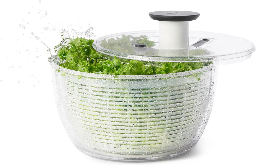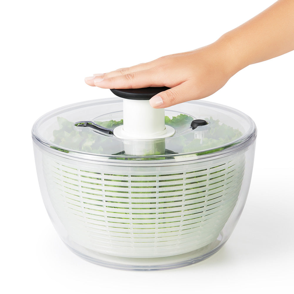 For fun and easy salad preparation, try the OXO GOOD GRIPS Salad Spinner. Simply press the soft, non-slip knob to start the basket spinning.