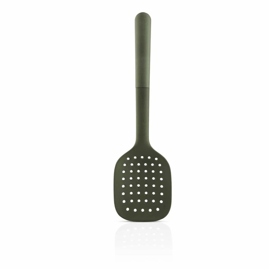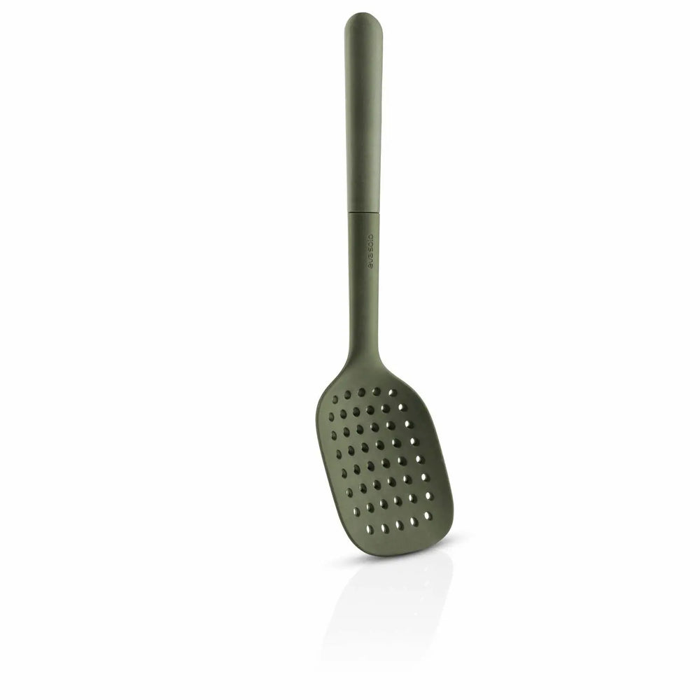 - Fleksibel hulske med afrundede hjørner, så man nemt kommer helt ud i siderne af skålen eller gryden