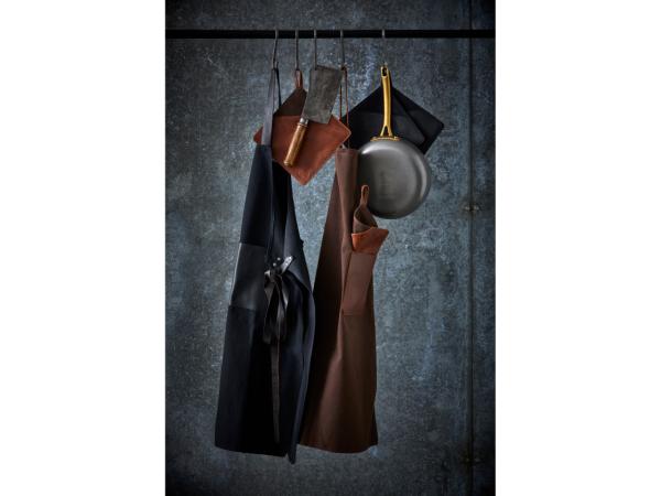 2 brune grydelapper af kanvas og læder. Kanvas er 100 % bomuldsstof i en kraftig vævning. Det er slidstærkt og vandafvisende, hvilket gør det egnet til hverdagsbrug. Læderet er 100 % bøffellæder. Bøffellæder er slidstærkt og har stor elasticitet. Med passende pleje vil bøffellæder holde i lang tid og få patina, som fremhæver læderets skønhed. Grydelapperne har en lomme, der gør det nemt at gribe fat i fade m.m. De beskytter hele hånden, fx når du tager et varmt fad ud af ovnen.