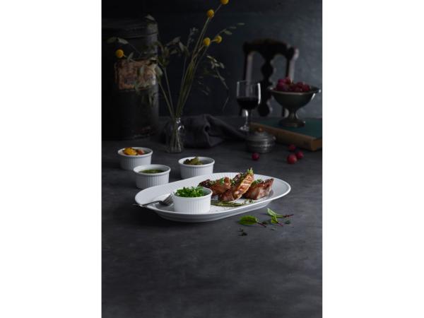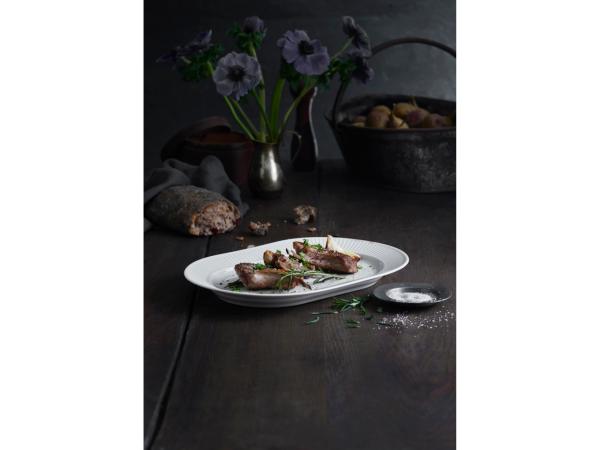 Elegant ovalt serveringsfad på 36 x 25 cm til servering af kolde og varme retter.
