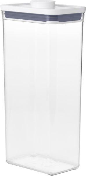 Den rektangulære POP Container opbevaringsboks fra OXO er perfekt til opbevaring af mel, sukker, pasta eller andre tørre madvarer. Boksen kan indeholde 3,5 liter.