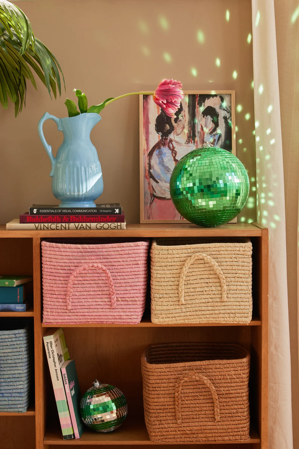 Intet siger "Let's party" som en diskokugle. Alt bliver lige lidt mere festligt med sådan et par glitrende glober i loftet. Denne er grøn, stor i størrelsen og måler 25 cm i diameter. Giv den et lille spin og se den sprede en regnbue af lys i dit hjem!