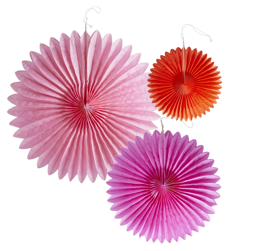 Leder du efter farverig pynt til din næste fest? Brug disse super søde vifter i lyserøde nuancer. De vil med garanti skabe god stemning! Hæng dem i træerne til din næste havefest eller pynt din stue med dem for at skabe en festlig atmosfære. De kommer i pakker med 3 stk. i forskellige farver og størrelser.