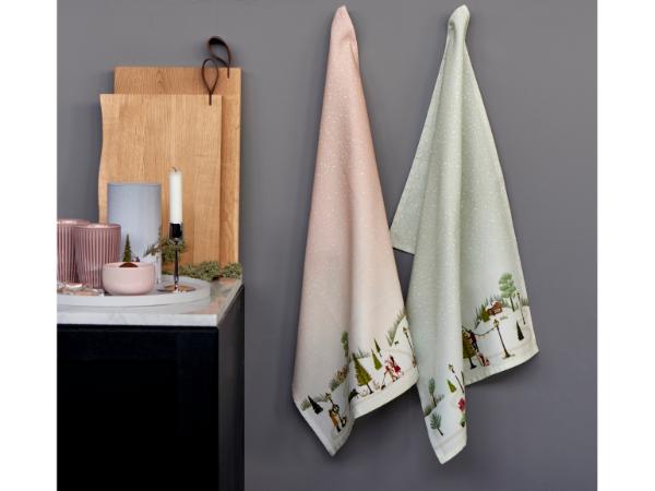 Viskestykke 50 x 70 cm i 100 % ren ny bomuld med eventyrlige vintermotiver. Serien Vinter er skabt i samarbejde med designer Dorthe Mathiesen. Hendes motiver med den karakteristiske grafiske streg og lyse, nordiske pastelfarver afspejler stemningen i de hyggelige vintermåneder og fortæller historier fra de små samfund om leg i sneen, stemningsfulde vinterlandskaber og samvær med familie og venner, som beskueren kan hoppe ind i og selv bygge videre på.