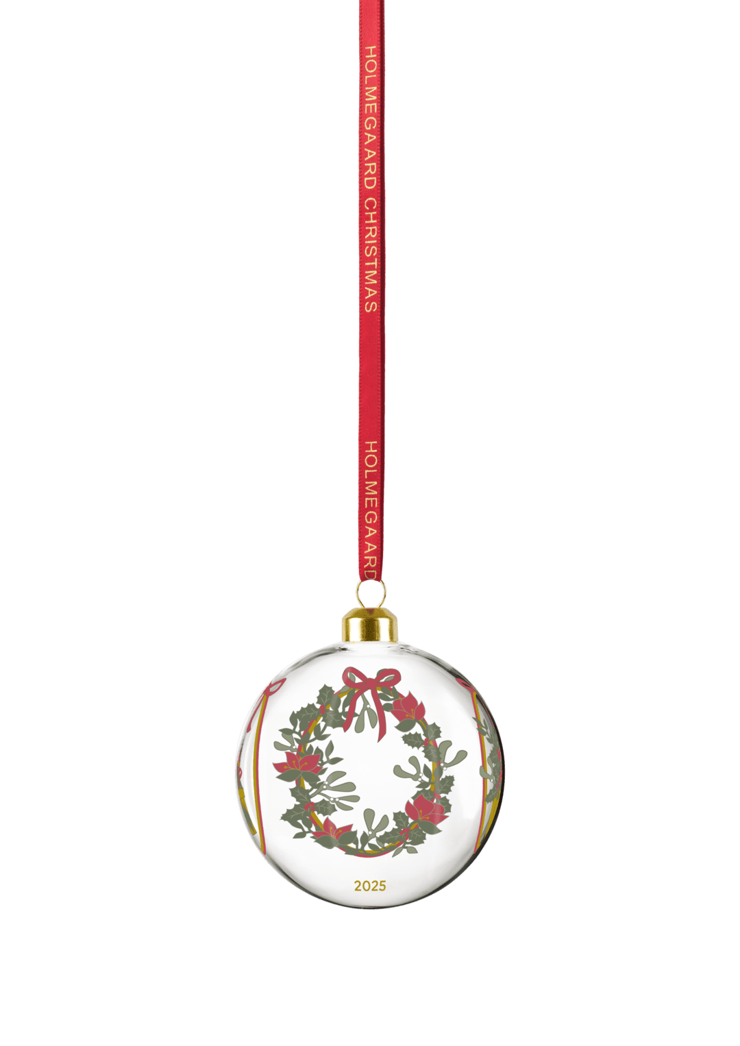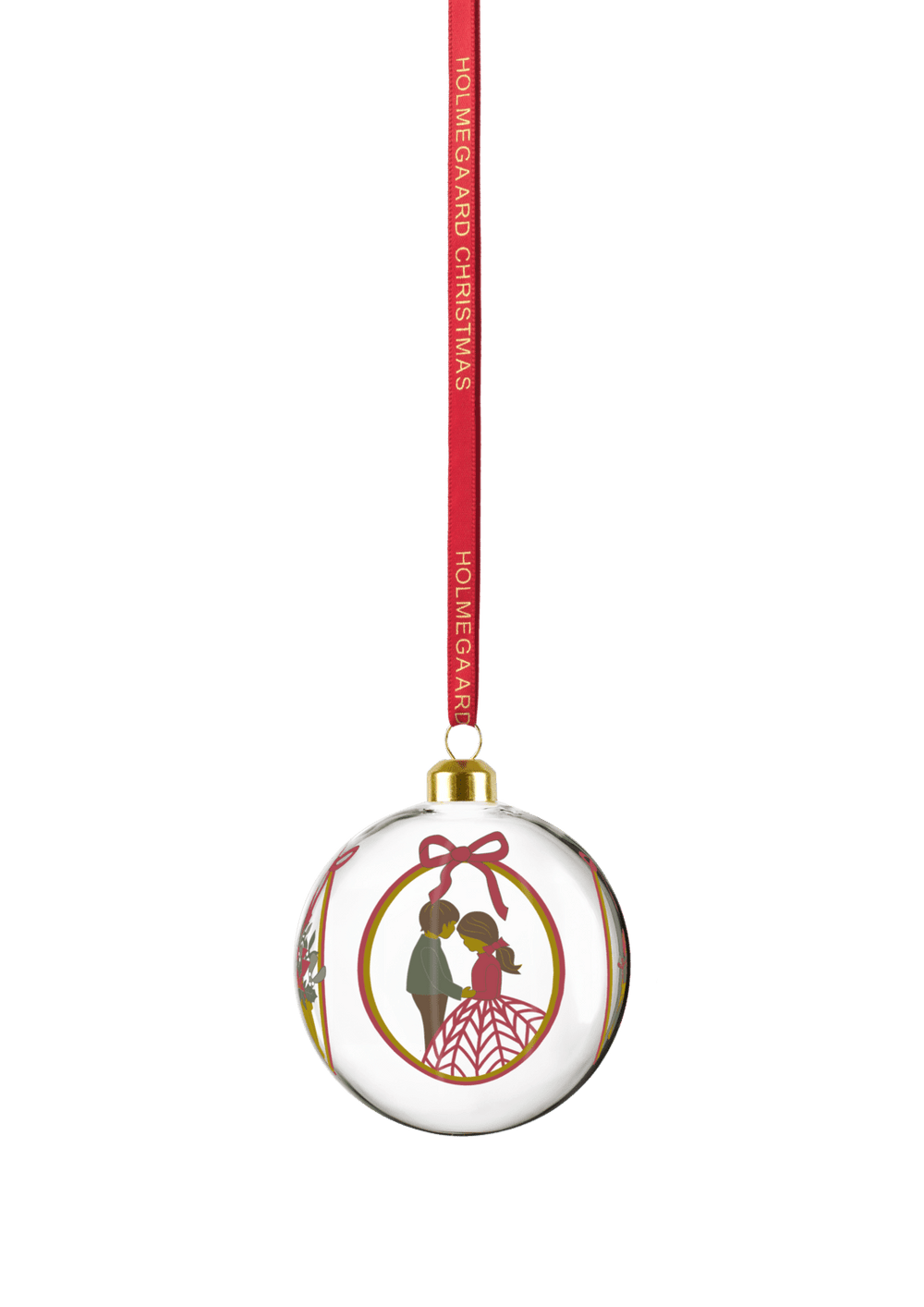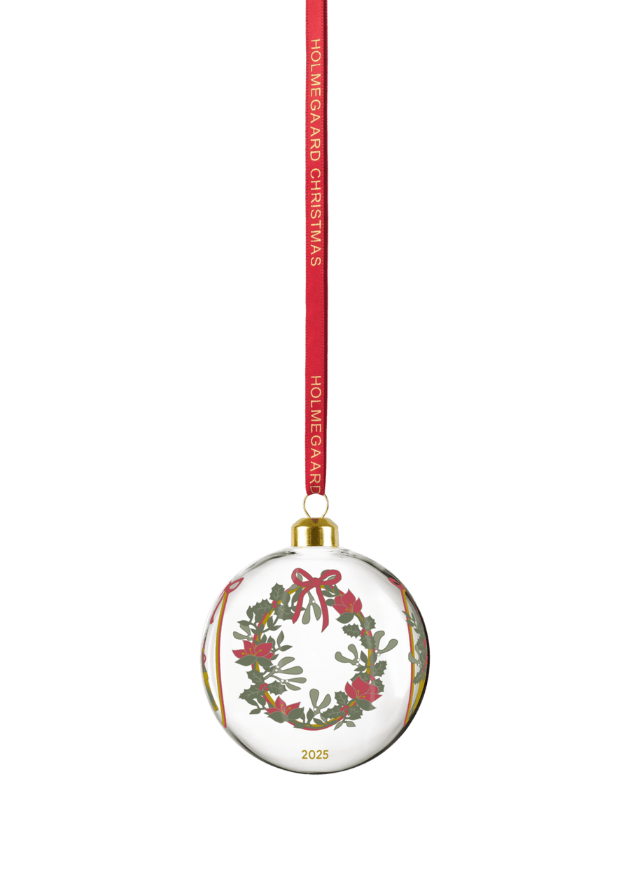 Masser af julegaver. En julekrans lavet af frodigt grønt, juleroser og kristtornbær. En traditionel og overdådig buket med juleblomster. Røde sløjfer. Og et ungt par, der holder hinanden i hånden under misteltenen. Med kunstner Jette Frölichs ikoniske papirklip inviterer Holmegaard Christmas os i 2025 med til en fejring af Holmegaards 200-årsjubilæum med et besøg hos den romantiske jul, der både refererer til de romantiske dekorationer på de mange Holmegaard Christmas-dele i den populære juleserie og til Romantikken og den danske guldalder – den historiske periode hvor Holmegaard blev grundlagt. 2025-motivuniverset pryder selvfølgelig også seriens stilfulde julekugle, der stemningsfuldt og levende lægger op til masser af hyggelige samtaler og fremkalder en nostalgisk følelse af jul som i gamle dage. Den mundblæste julekugle måler 8 cm i diameter og kommer med et flot rødt silkebånd med guldprægning, der matcher glaskuglens gyldne top. Hæng den på juletræet eller en grangren og nyd den sammen med resten af serien – og lad de mesterlige motiver og Jette Frölichs originale og kunstneriske univers udfolde sig i skøn forening med Holmegaards passionerede glashåndværk, mens du hilser julen velkommen med familie og venner. Med de mange dele i Holmegaard Christmas-serien er det muligt at pynte op og dække et vidunderligt julebord til gæsterne, hvor alt i glas taler sammen – også med dele fra foregående år, der i Jette Frölichs hyggelige og klassiske julestil er designet til at matche på kryds og tværs med hver deres julefortælling. Og det er altid hyggeligt for gæsterne at gå på opdagelse i motiverne, der alle giver os en følelse af julens magiske og mindefulde univers fortolket i en unik glasserie. Siden 1825 har Holmegaard med fokus på håndværk af højeste kvalitet udfordret glassets potentiale og skabt en lang række ikoniske designklassikere, der har defineret dansk glashistorie. En passioneret pioner med et hjerte af ild.