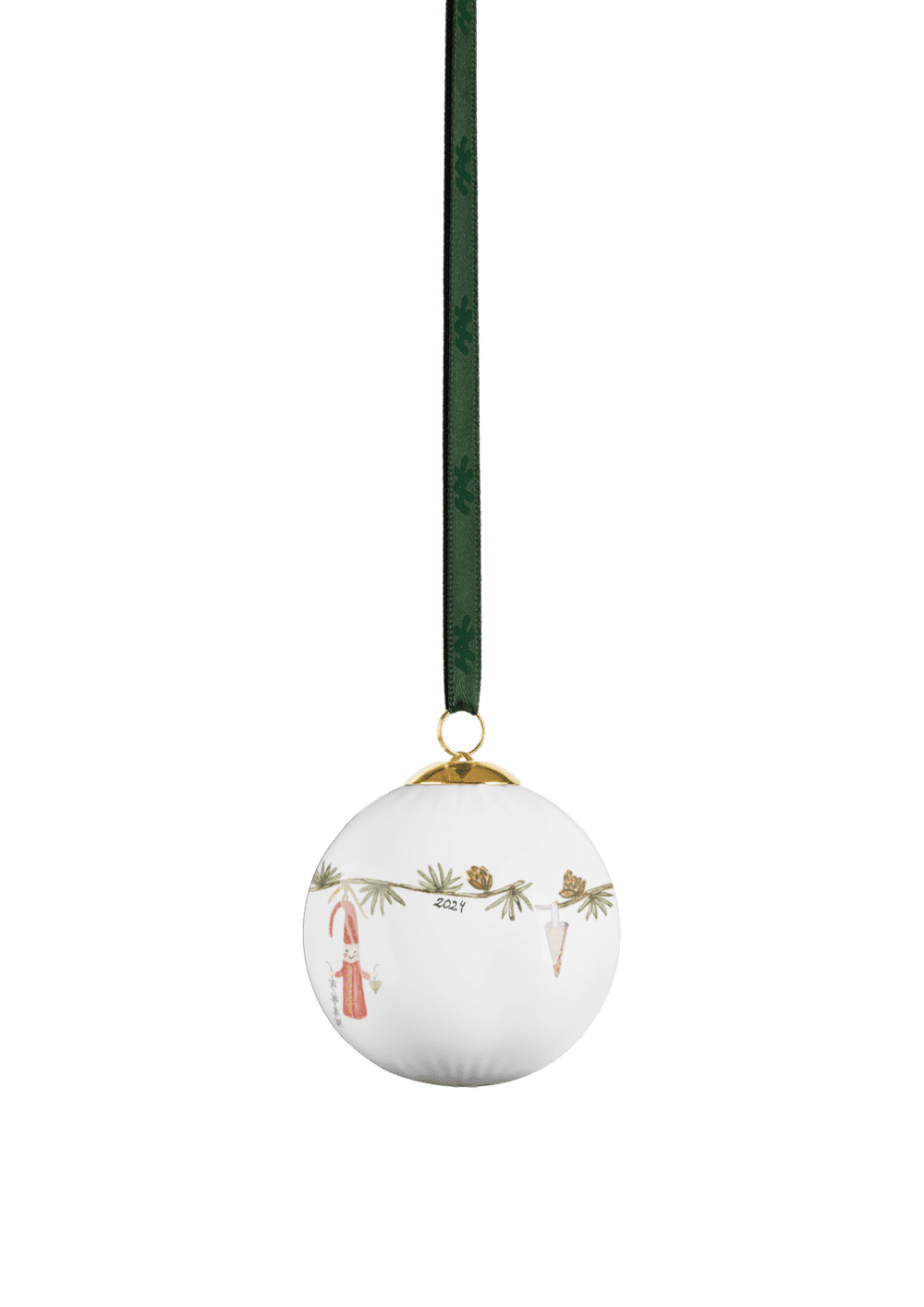 Kähler hylder julens særlige nostalgi og traditioner og inviterer med det både klassiske og moderne julestel Hammershøi Christmas os alle ind i julens magiske og fredfyldte univers. Også Hammershøi Christmas-julekuglen 2024 er en hyldest til den autentiske, nostalgiske jul. Julekuglen har en diameter på 6 cm og er dekoreret med et stort, flettet julehjerte, et legetøjstog og en charmerende, lille nisse. Måske har du allerede en eller flere Hammershøi Christmas-julekugler fra de foregående år? Lad dem sammen skabe julestemning i vinduet, eller hæng dem på grene, der placeres i en vase. De yndige julemotiver er gennem årene skabt af kunstner Rikke Jacobsen, der hvert år tilfører det klassiske Hammershøi-stel designet af Hans-Christian Bauer endnu et strejf af julemagi. I dag rummer Hammershøi Christmas dele nok til en komplet opdækning til alle decembers måltider, fra brunch og frokost til julemiddag. Der følger en smuk, grøn silkesnor med til julekuglen, så du nemt kan hænge den op.