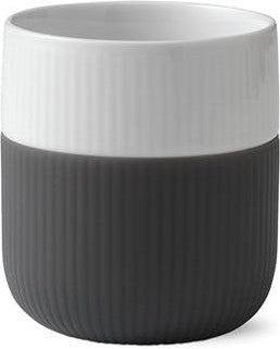 En smuk antracitgrå farve skaber et monokromt udtryk på dette enkle krus i Riflet Contrast. Kruset på 33 cl er oplagt som kaffekrus eller tekrus, og silikonebunden holder varmen væk fra overfladen.