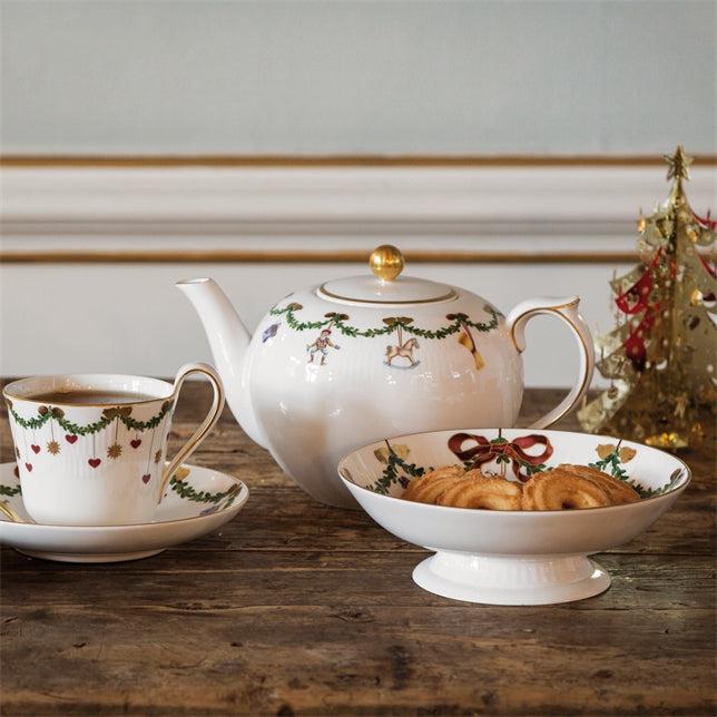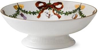 Lav de fineste serveringer af dine julekager og klementiner med denne skål på fod fra det elskelige julestel, Stjerne Riflet Jul. Skålen på 18 cm er dekoreret med en granguirlande, der er pyntet med julepynt og sløjfer med gulddetaljer, der fortsætter videre på skålens kant. Blandt julens smukke traditioner hører julestellet fra Royal Copenhagen. På tallerkener, skåle og kopper snor granguirlanderne sig højtideligt, dekoreret med elegante silkesløjfer og den fineste julepynt. Stjerne Riflet Jul skaber stemning og gør julen til noget helt særligt – generation efter generation. Hver eneste steldel er et smukt stykke julepynt i sig selv, og når bordet står dækket og lysene er tændt, så bliver det helt sikkert jul igen.