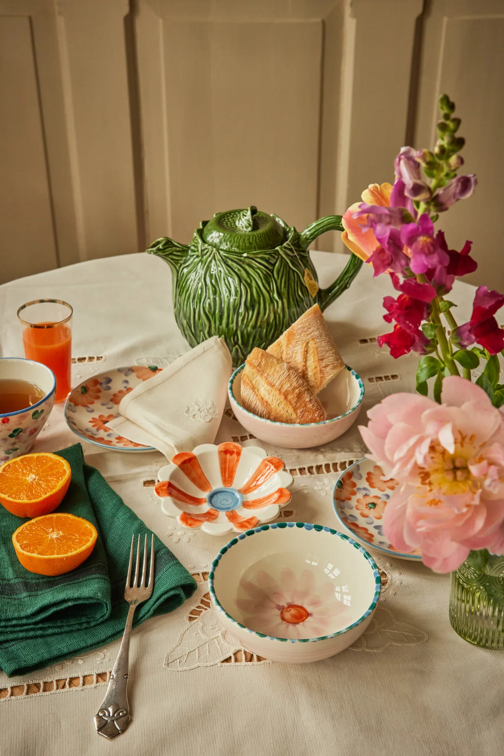 Vi elsker blomster, så selvfølgelig skulle vi lave en blomsterskål, som kan bruges til morgenmad, suppe eller salat. Ja, den er faktisk bare god til det meste! Skålen er håndmalet af en gruppe fantastiske portugisiske kvinder, hvilket gør hver enkelt skål helt unik. Vi synes det er så charmerende!